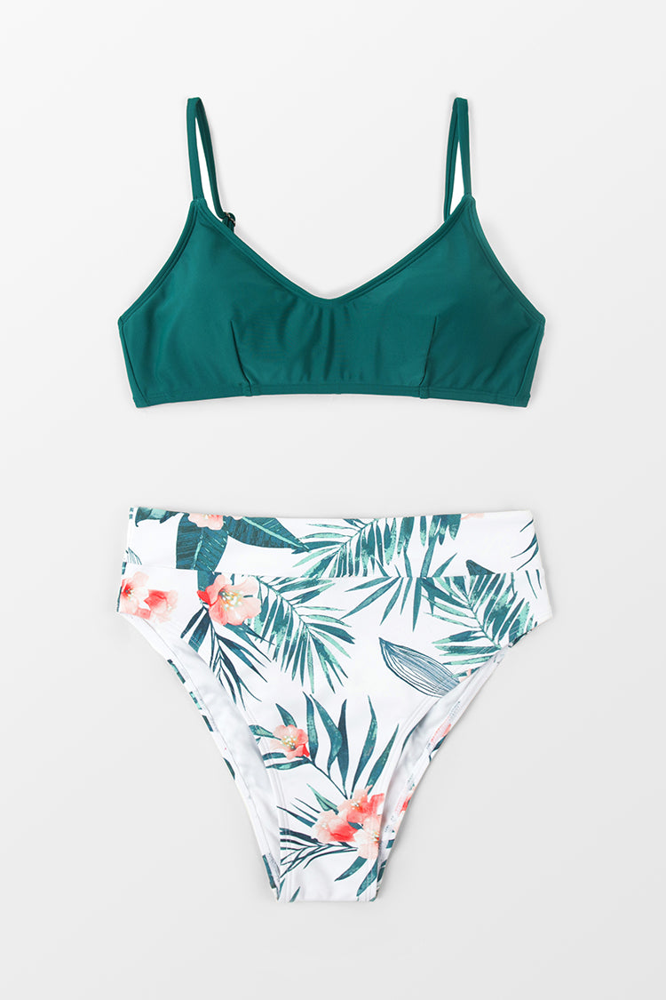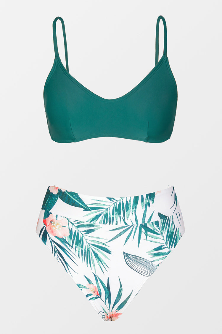 HomeGreen Bralette And Banded High Waist Bikini Swimsuit