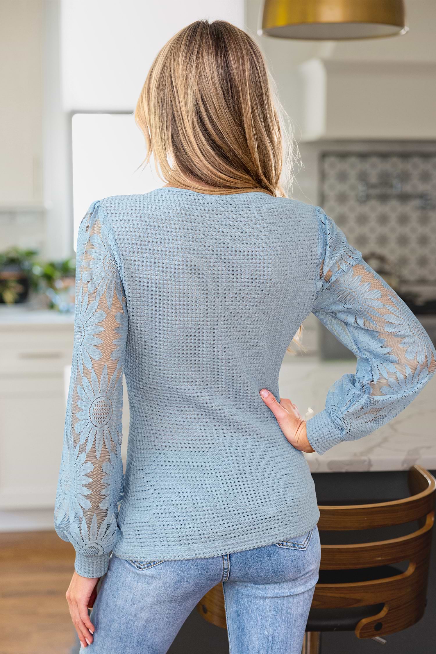 This soft, stretchy top offers a comfortable feel but runs small, so we recommend sizing up for the best fit. The Peppy Mood Blue Top was made to keep things fun and flirty! The V-neckline and sheer long sleeves add just the right mix of playful and polished for any day or night plans.