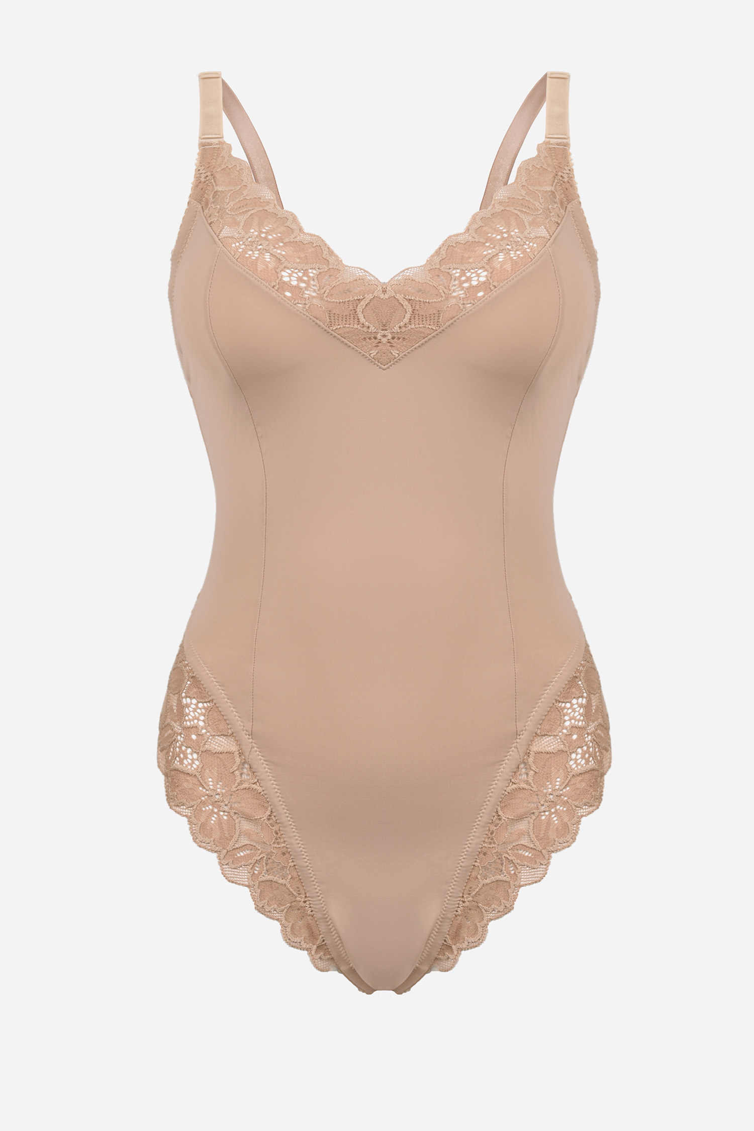 HomePink Lace Trim High-Cut Leg Bodysuit