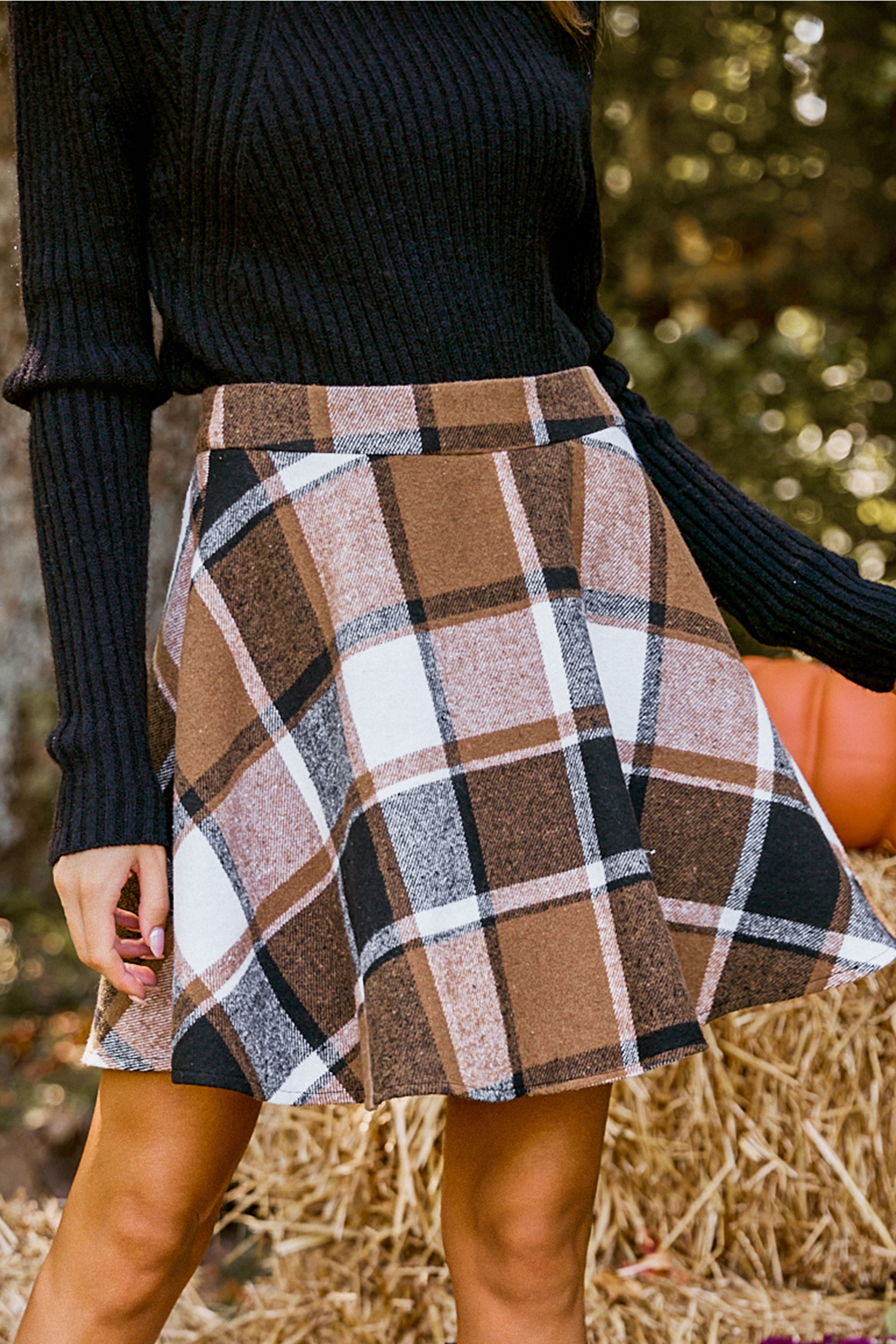 Channel your inner trendsetter with the Plaid Flared Mini Skirt. Its bold plaid pattern and flared cut will have you rocking that “I’m effortlessly stylish” look all day long.