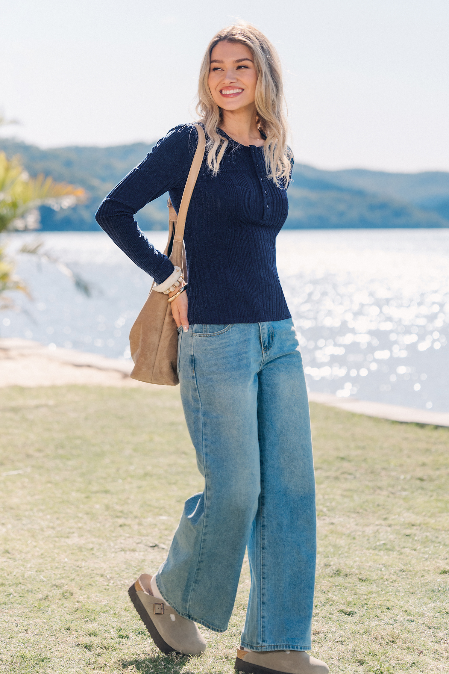 The R&R Blue Top is all about relaxed, stylish vibes! Its round neckline and long sleeves create a cozy, chic fit that’s perfect for casual days or weekend plans.