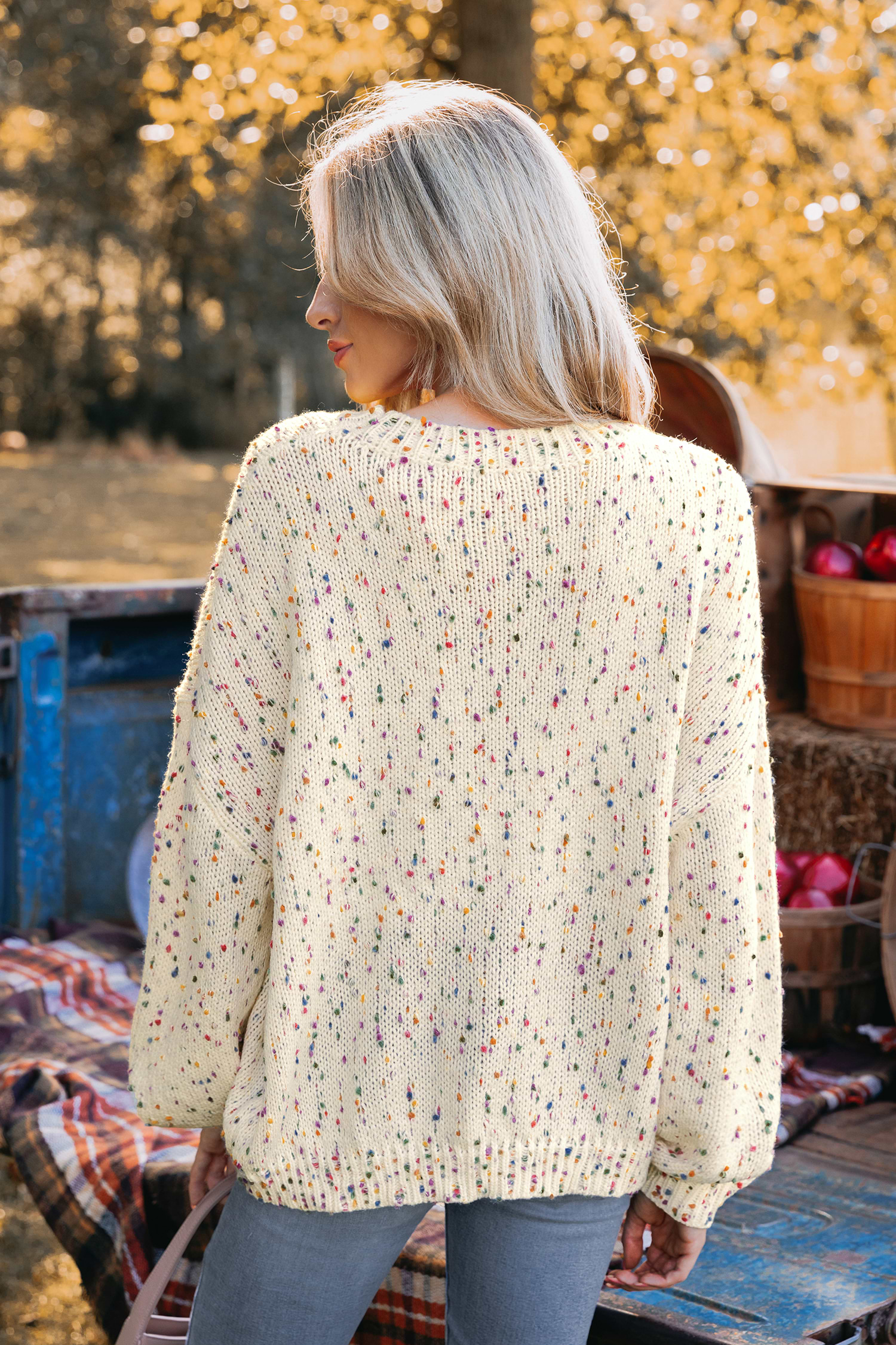 Elevate your winter style with our Rainbow Pom Pom Drop Sleeve Sweater. This playful piece combines vibrant colors and whimsical pom poms with a comfortable drop-sleeve design, adding a touch of fun to your cozy wardrobe.