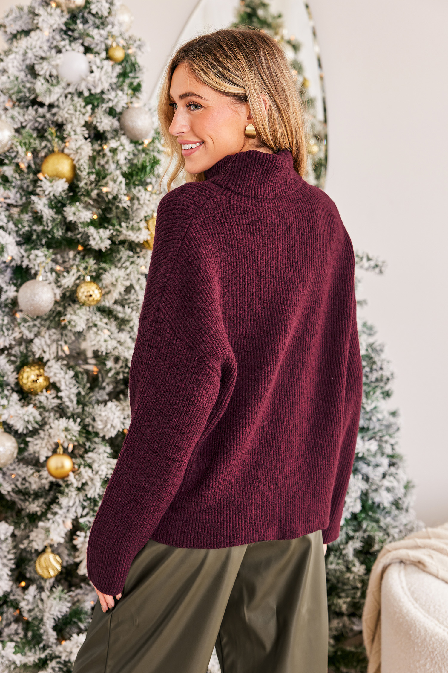 Burgundy Loose Fit Long Sleeve Turtleneck Jumper