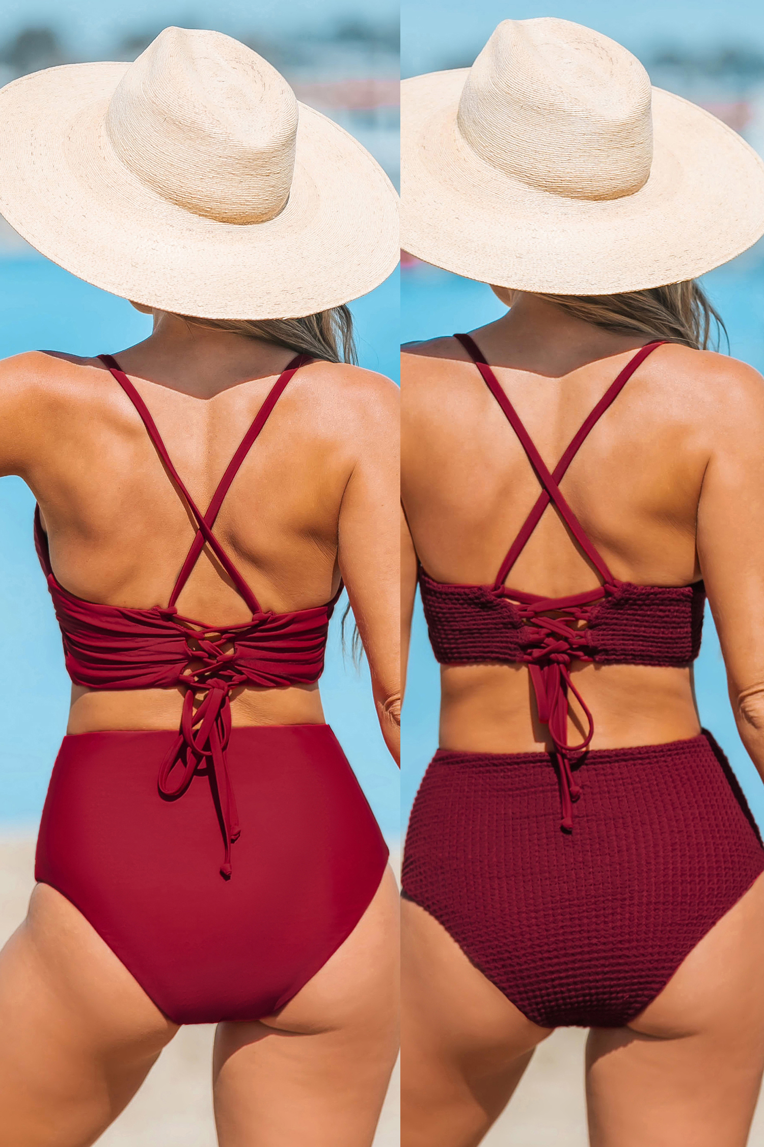 HomeRed Reversible Bikini Top & High-Waisted Bottoms Set