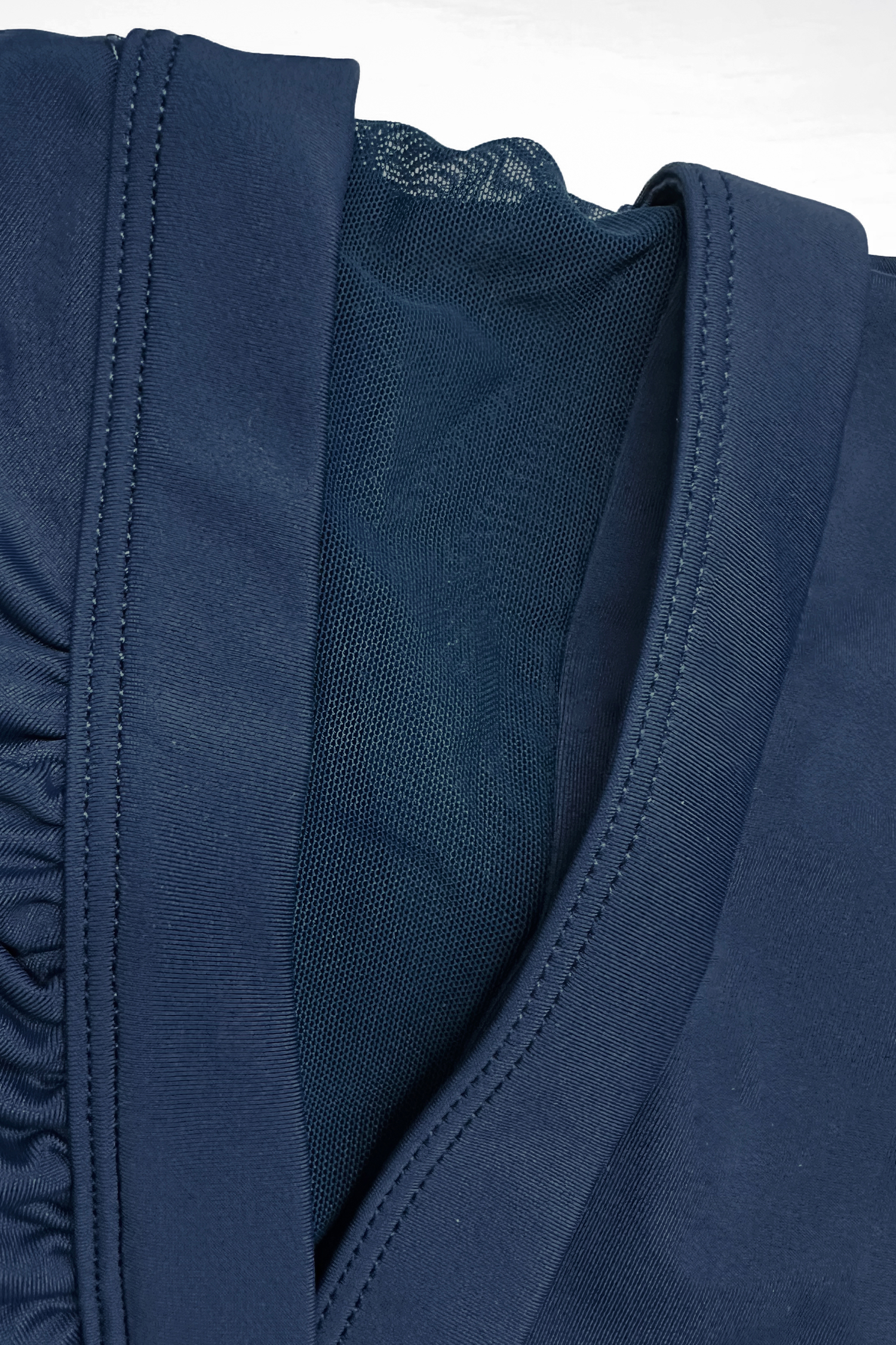 Plus Size Mesh Wrapped Halter Navy One Piece Swimsuit