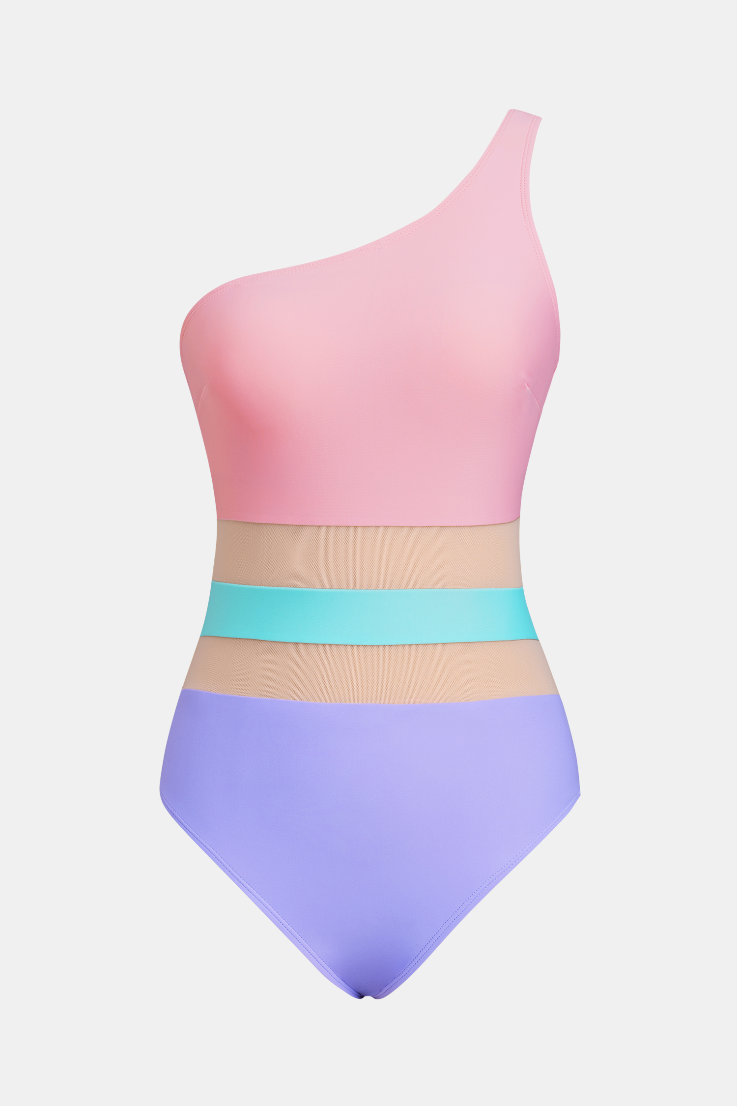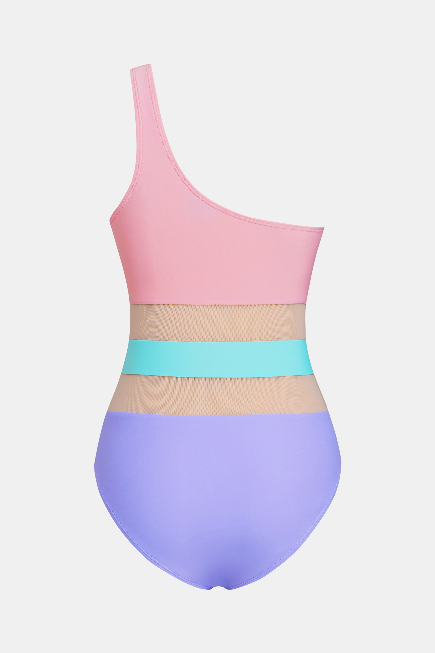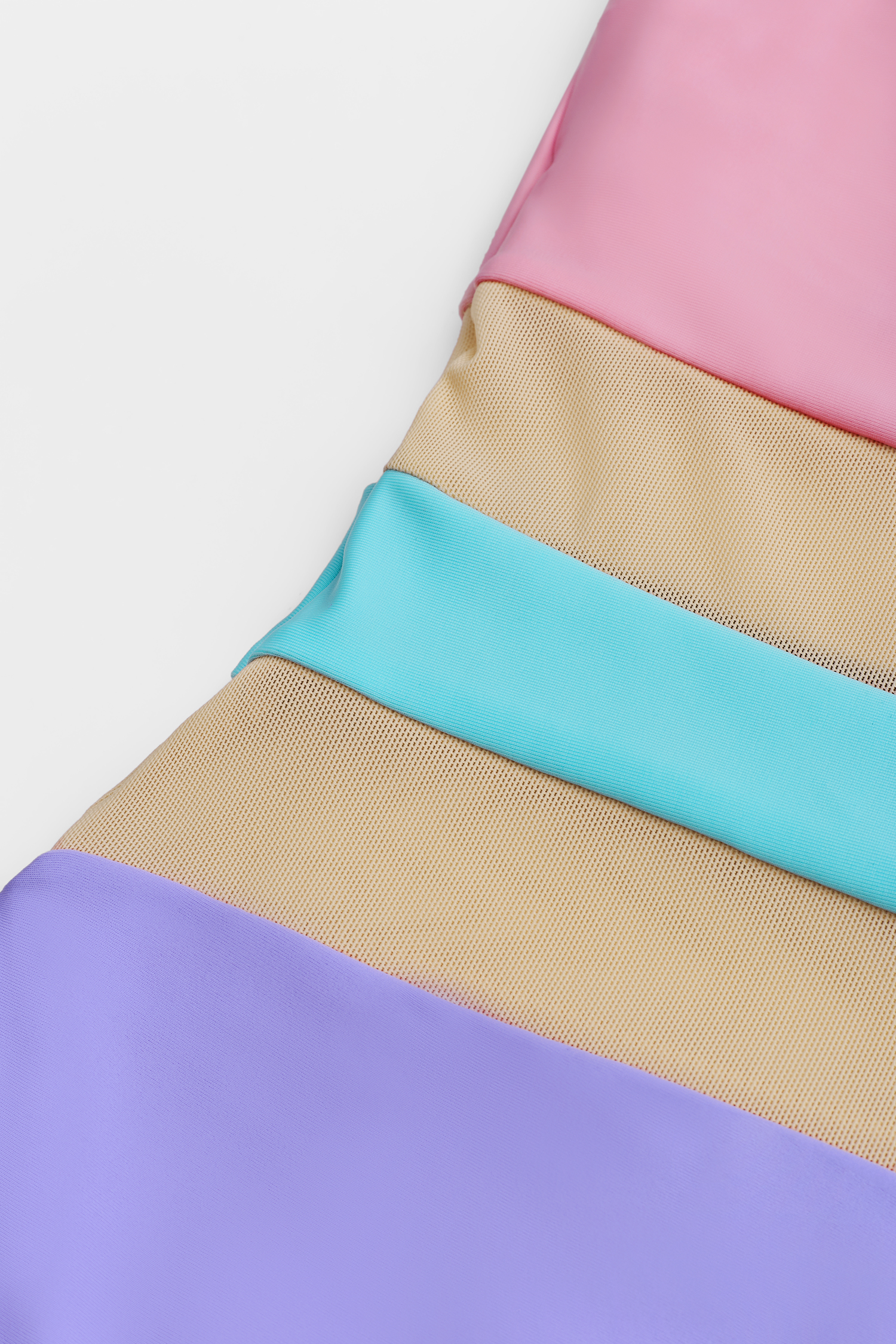 Colorblock Mesh Retro Pop Pastel One-Piece Swimsuit