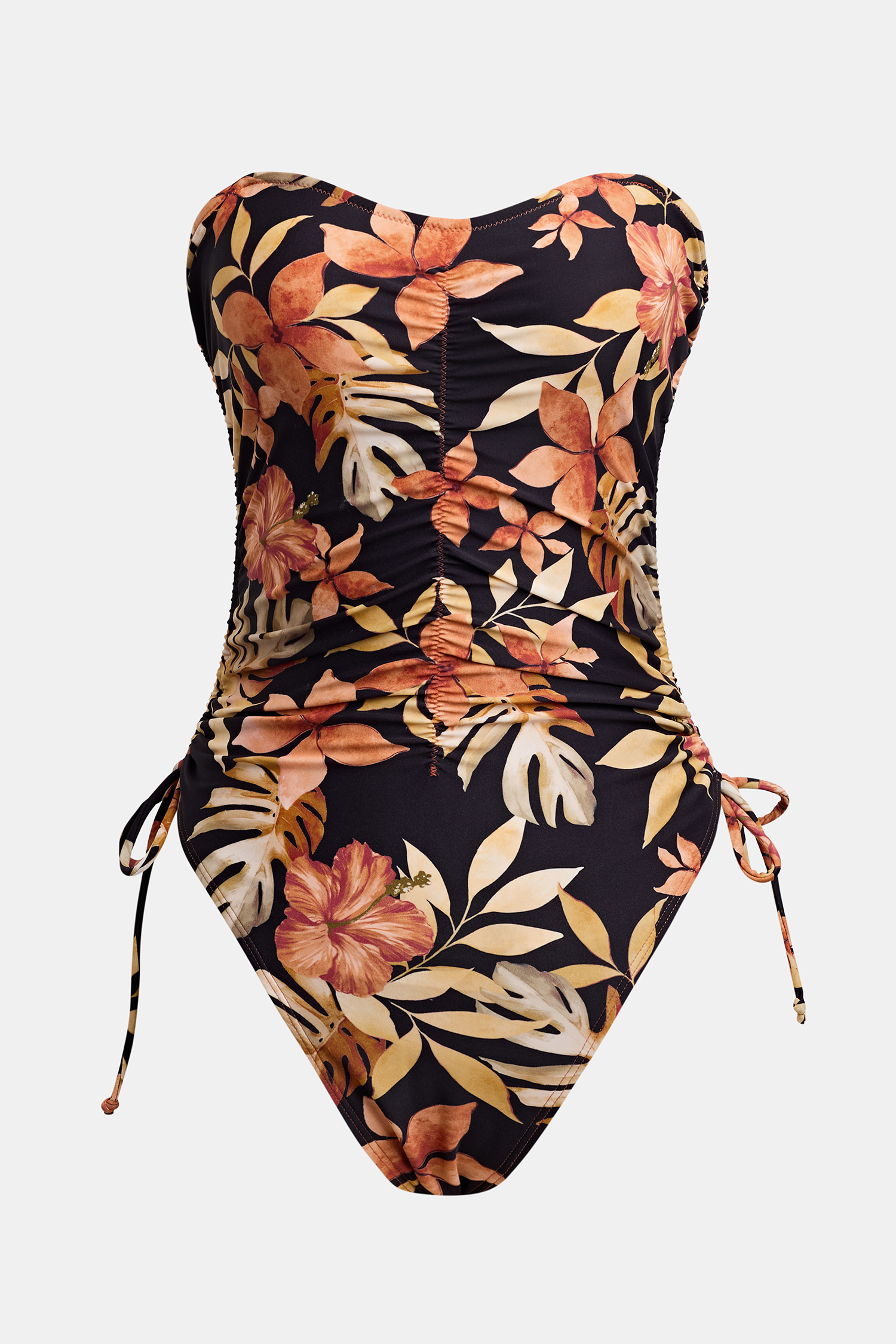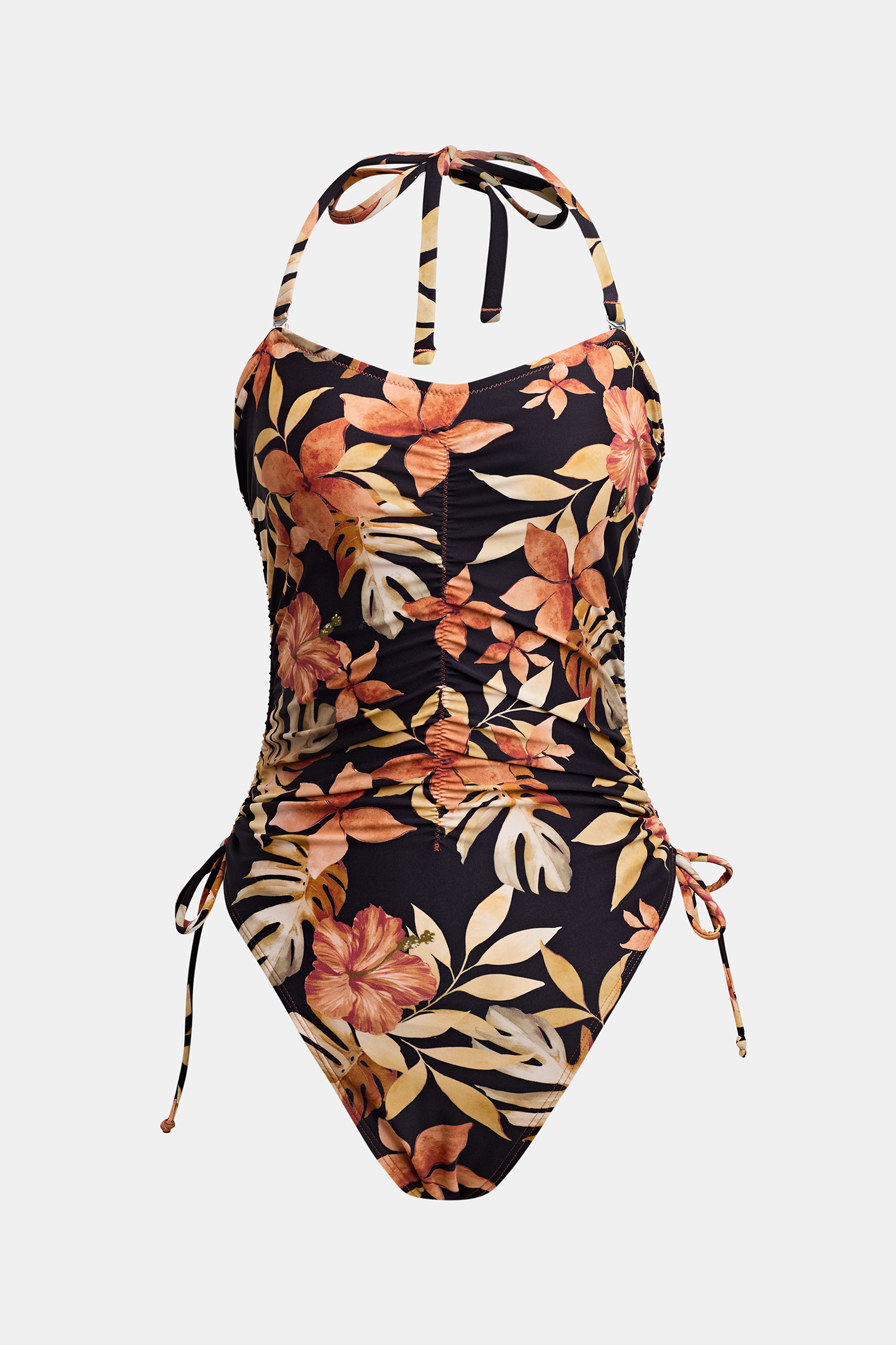 Retro Sweetheart Tropical Bandeau Halterneck One-Piece Swimsuit