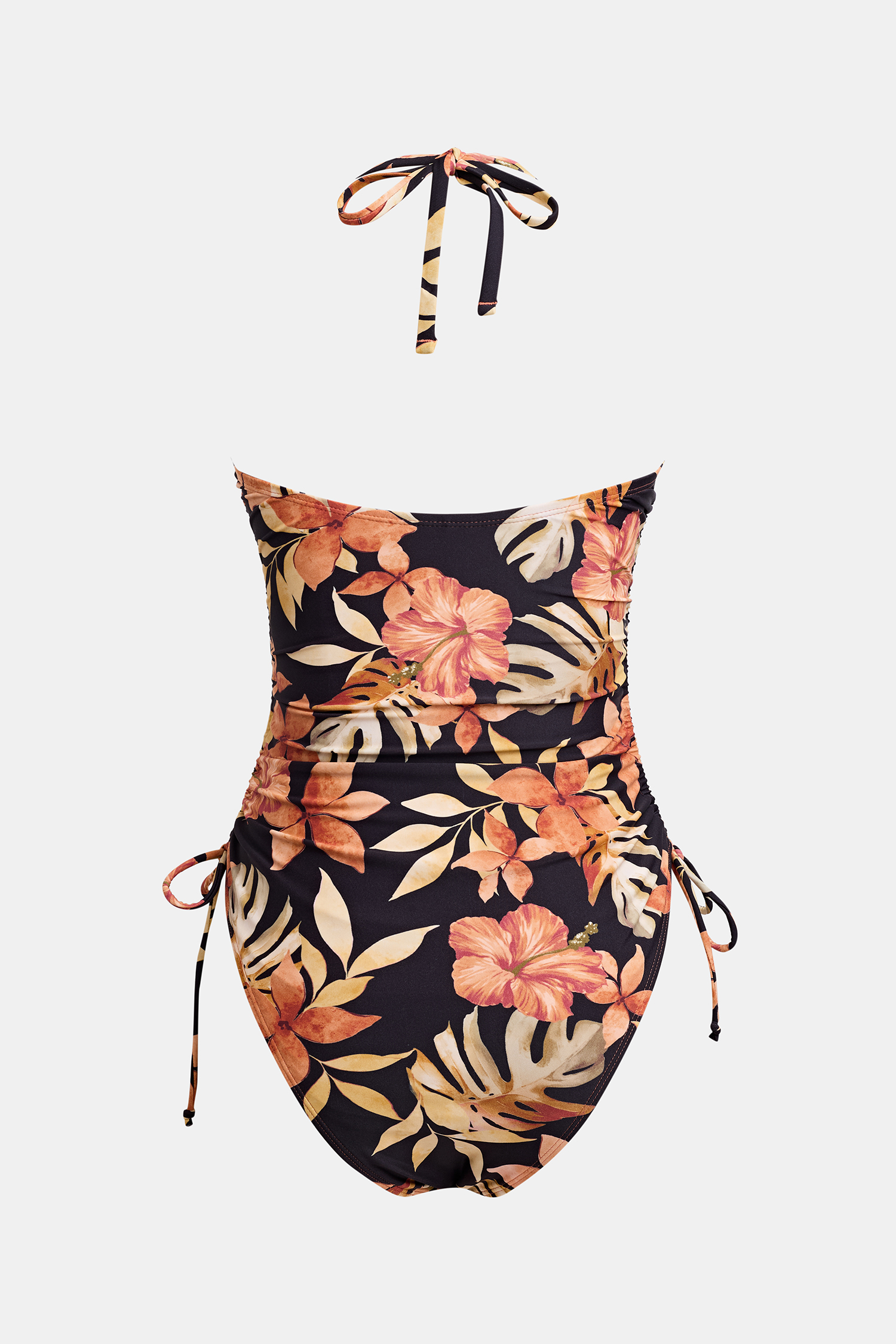 HomeRetro Sweetheart Tropical Bandeau Halterneck One-Piece Swimsuit