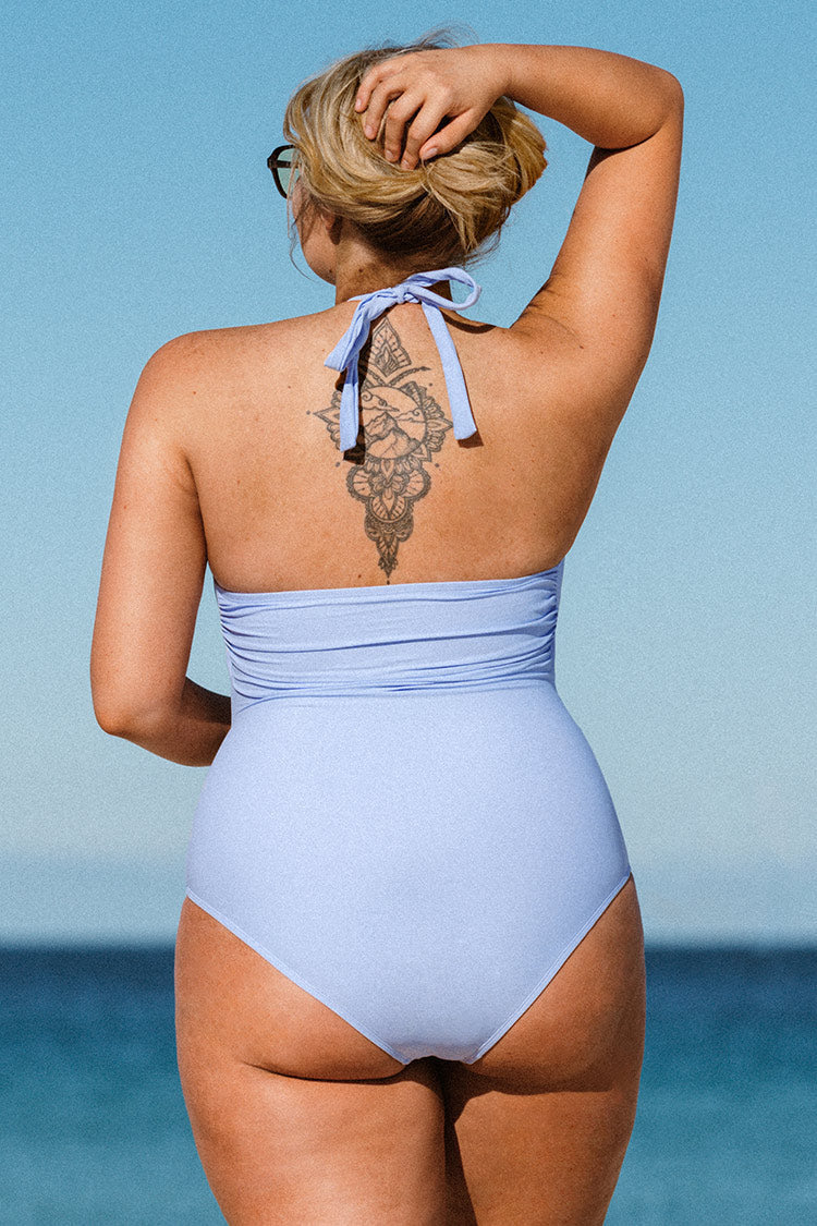 Plus Size Sash High Neck Tummy Contro One Piece Swimsuit