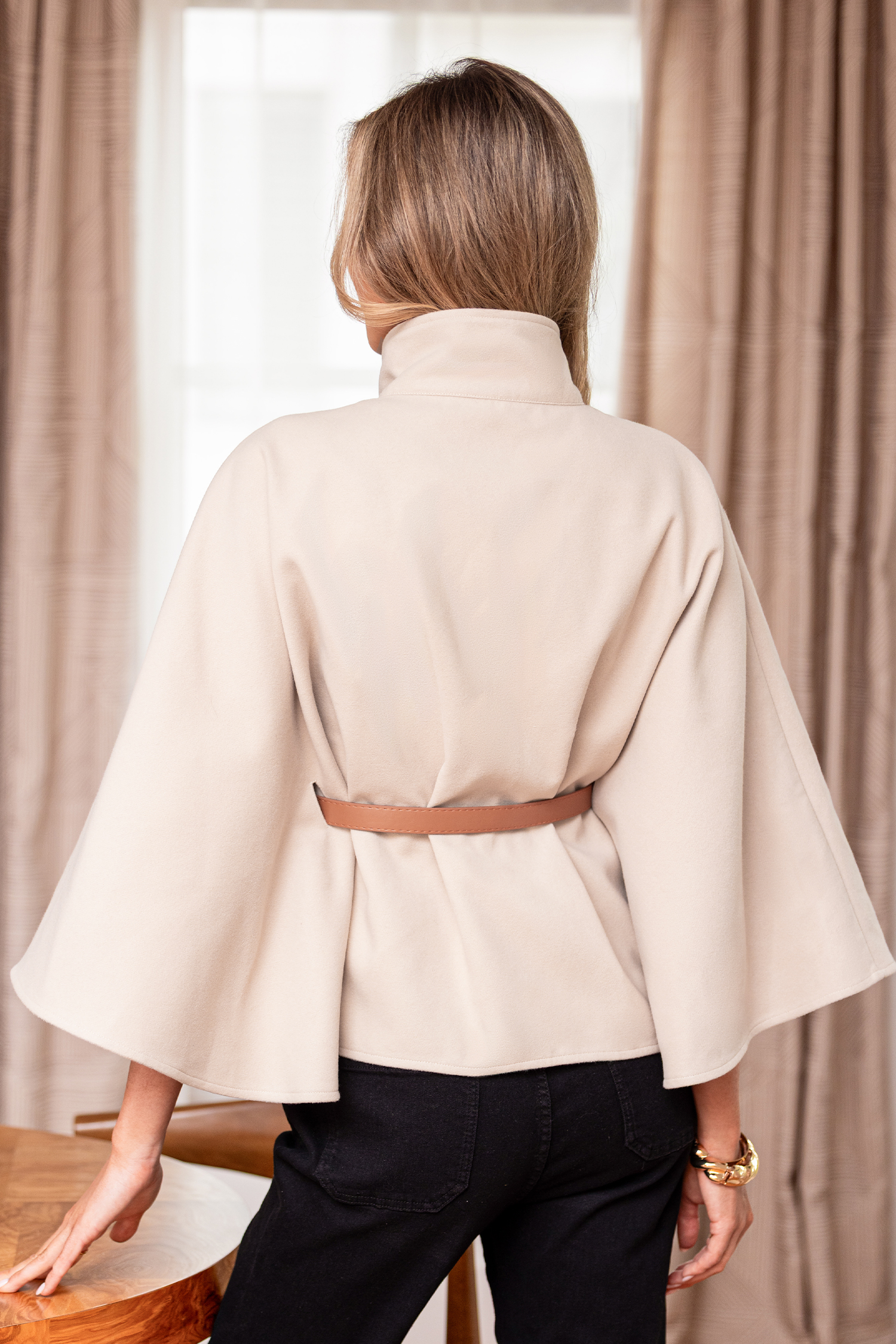 The Sepia Beige Coat gives off a cool, put-together vibe that works for every cold-weather moment! The high neckline, long sleeves, and belted waist create an easy, polished shape you can throw on with anything.