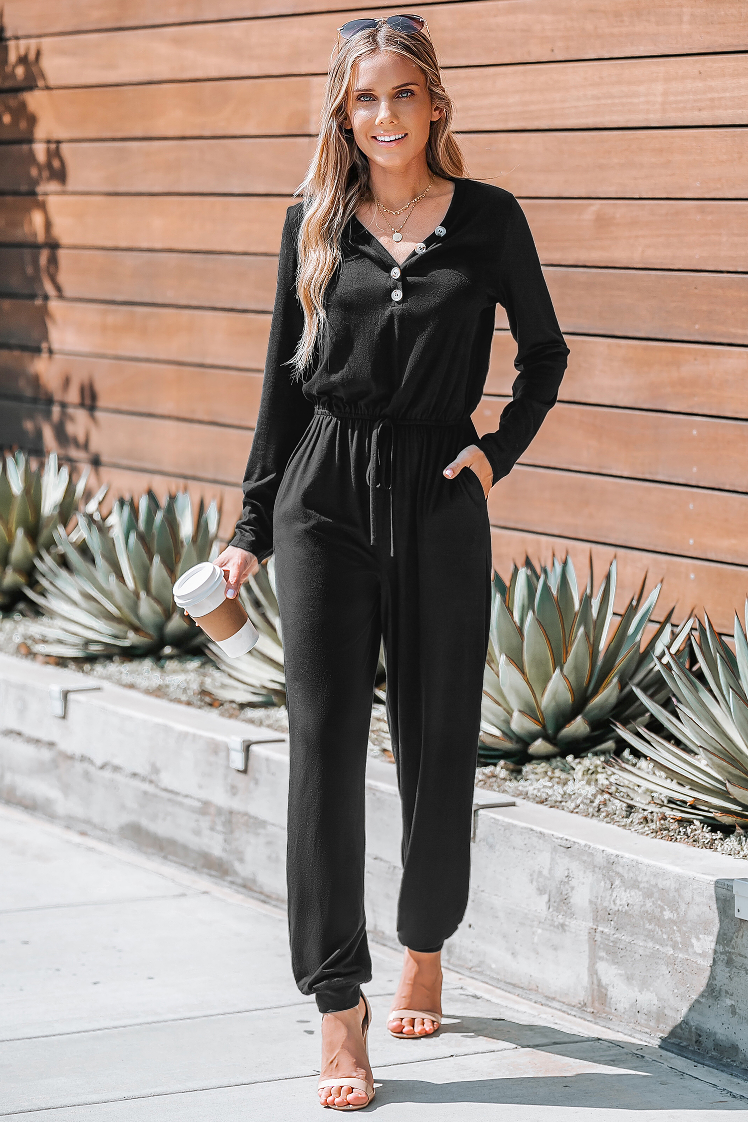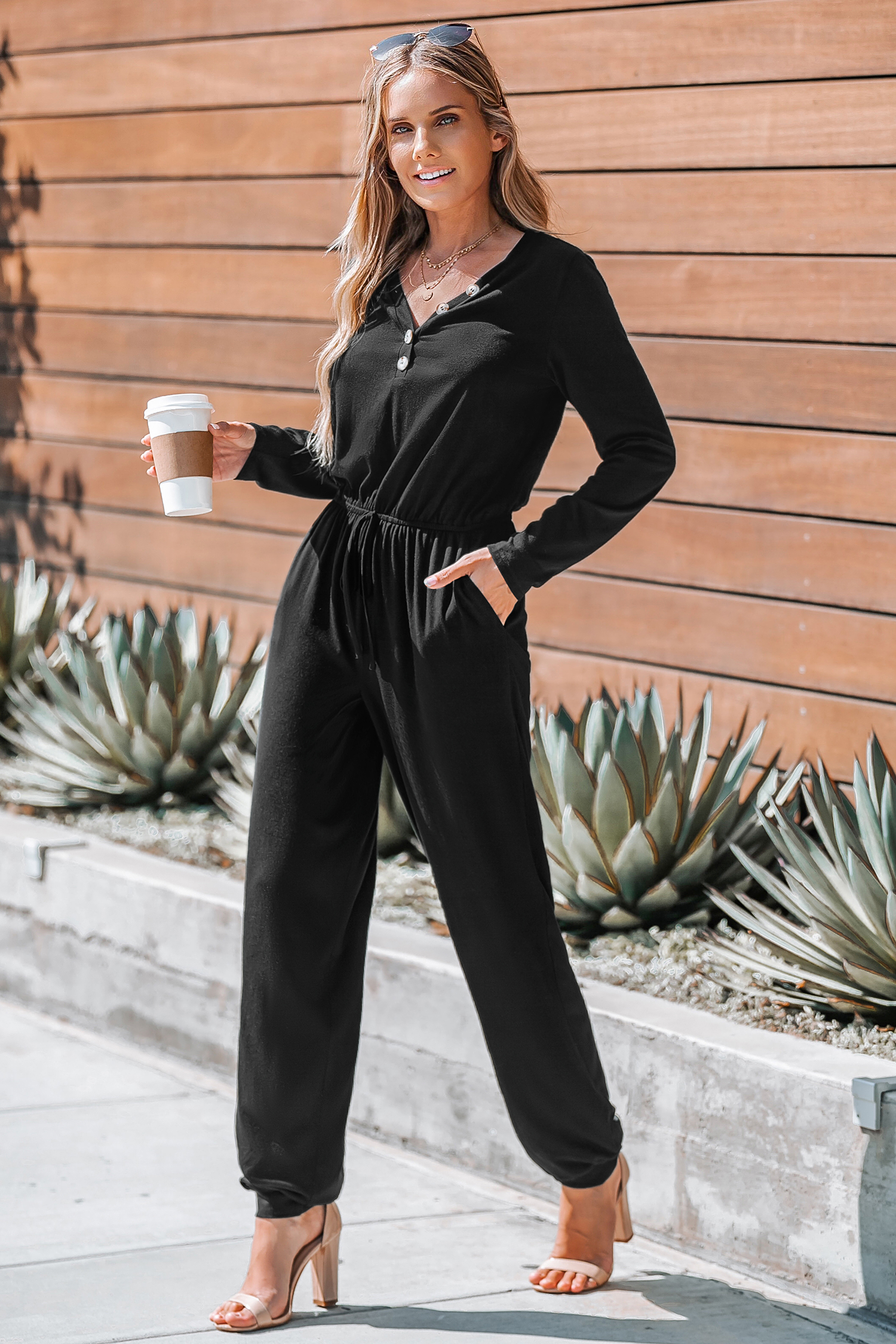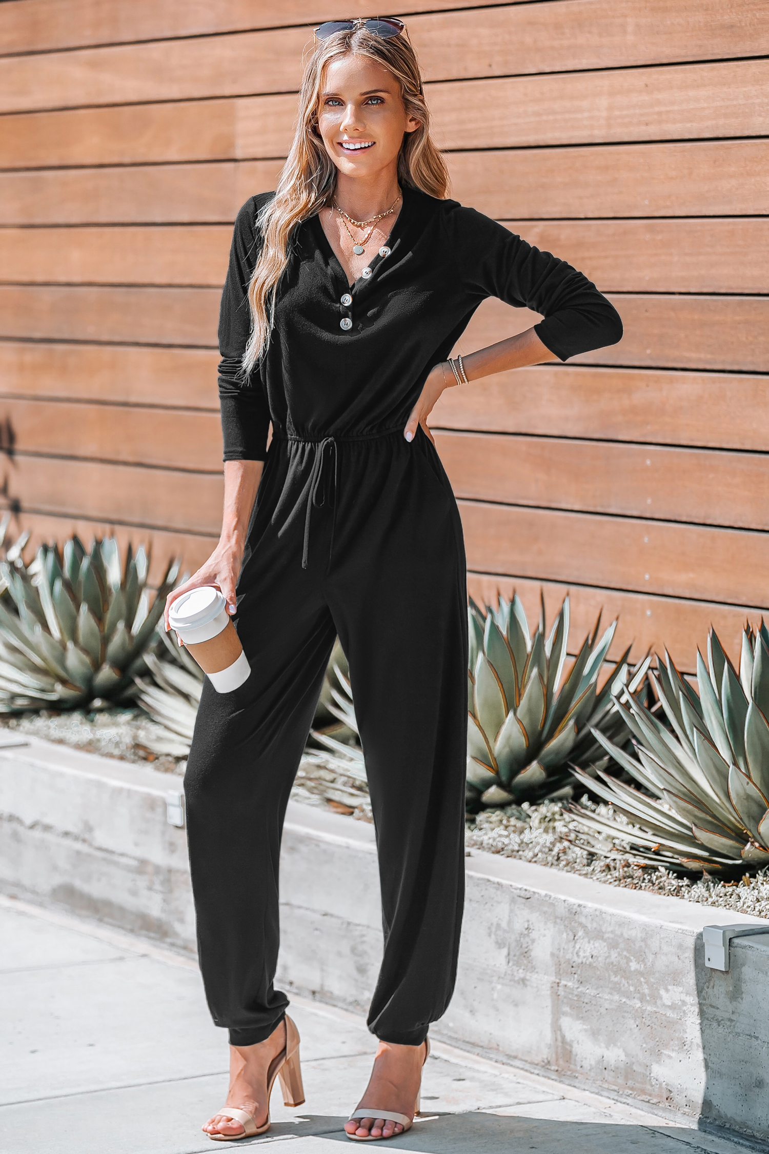 HomeShadow Black Drawstring Waist Jumpsuit