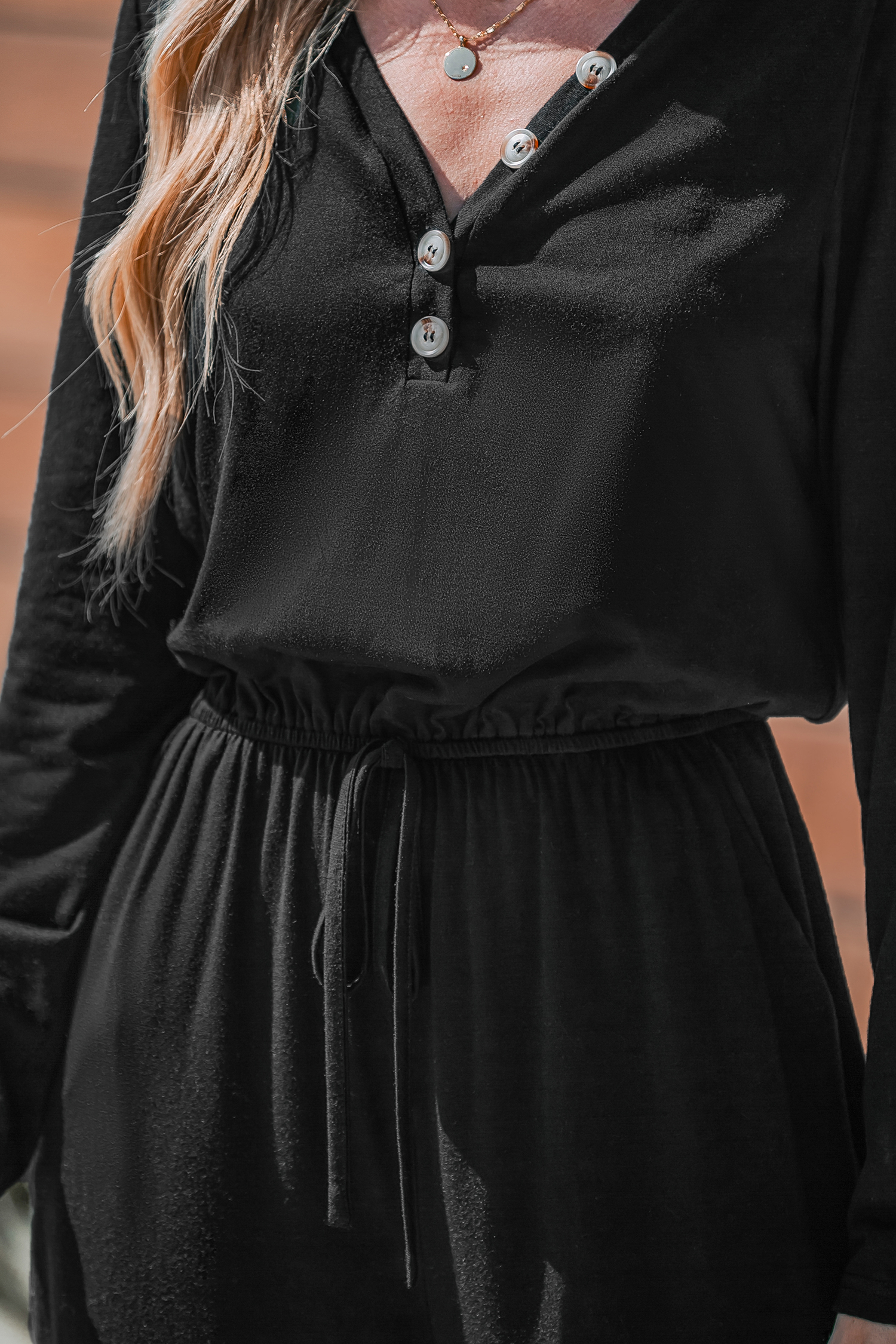 Shadow Black Drawstring Waist Jumpsuit