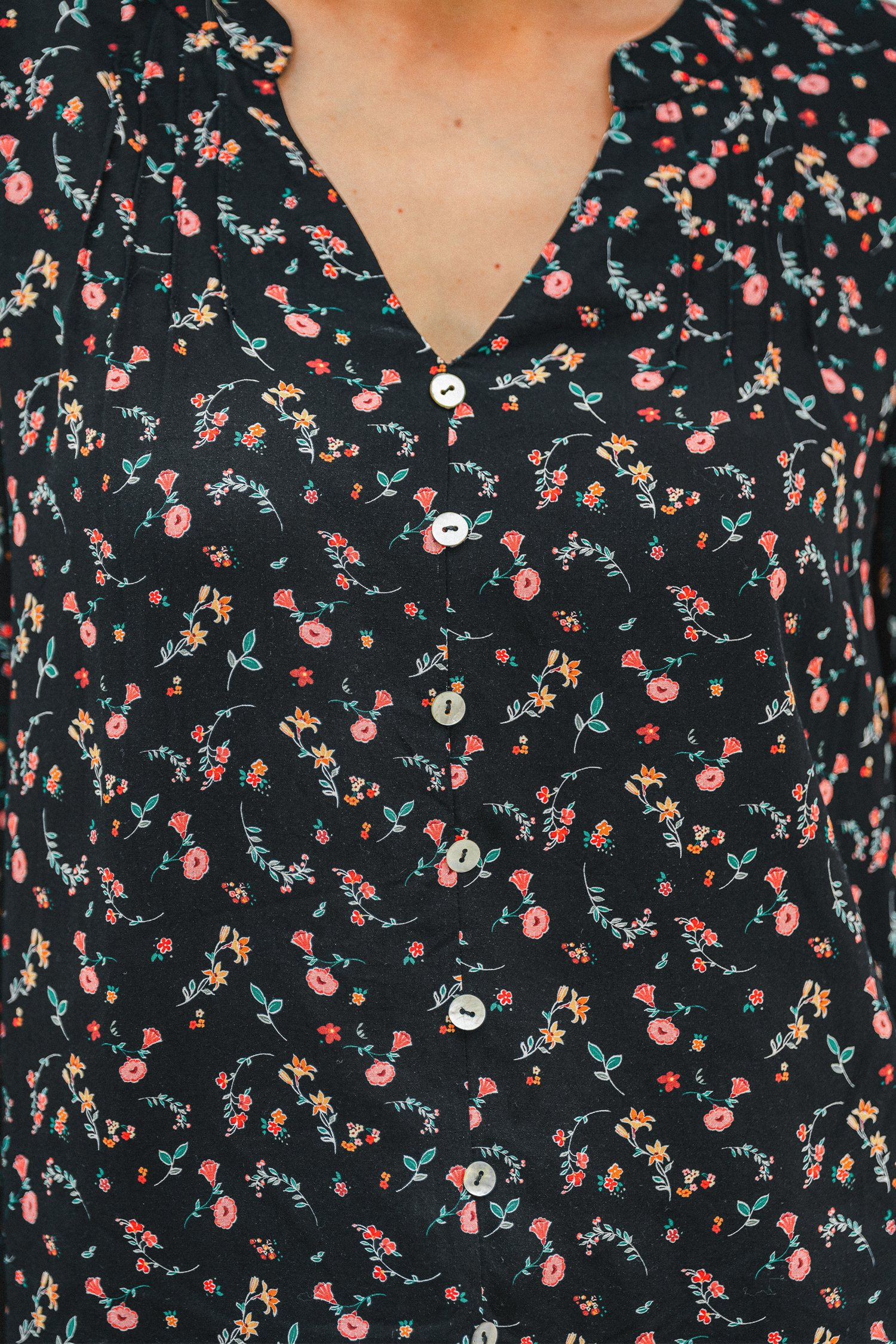 The Shadow Bloom Floral Blouse is a flirty, feminine piece for everyday style! Its notched neckline, long sleeves, and button-front detail create a polished, effortless look.