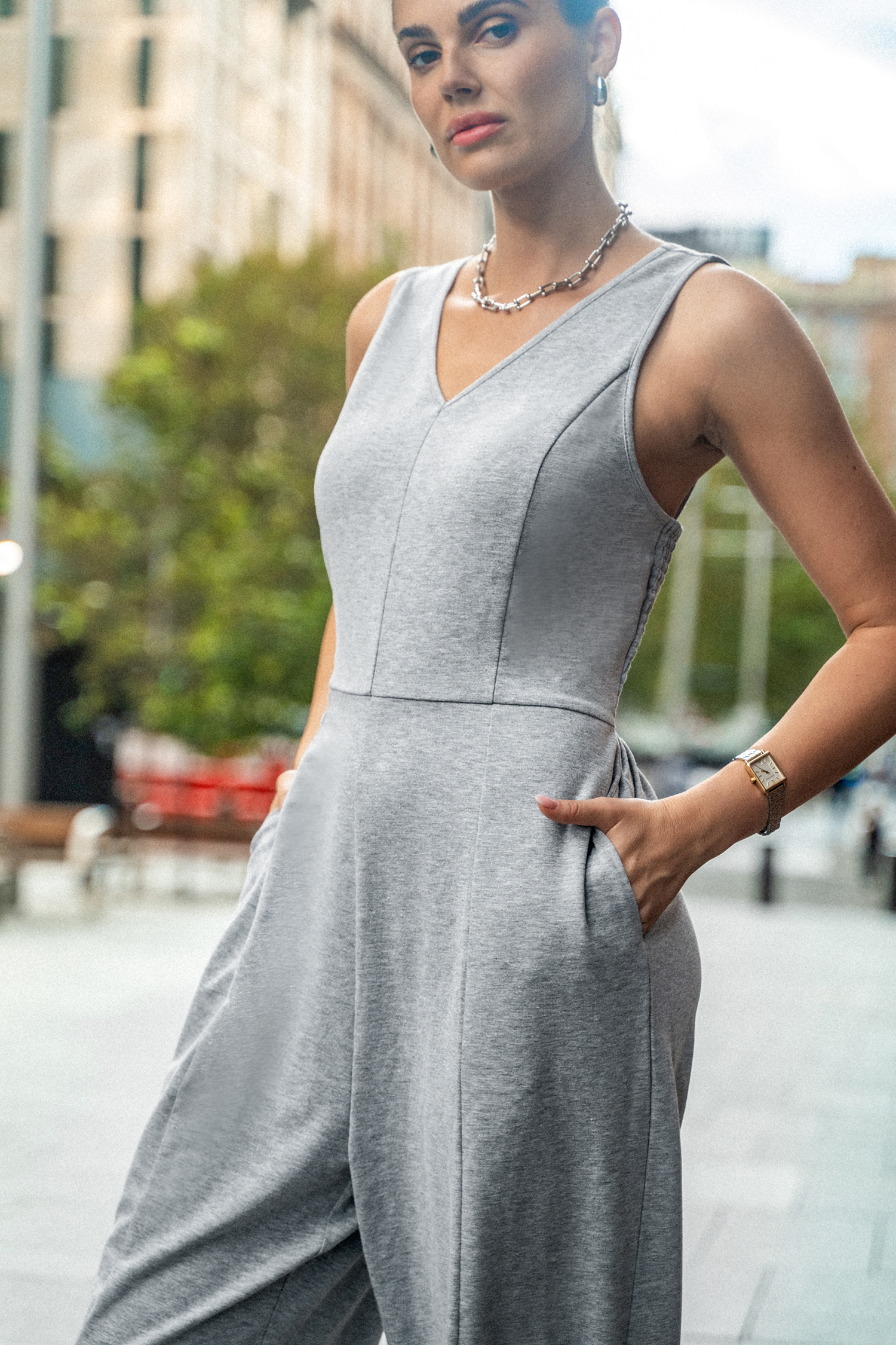 Sleeveless V-Neck Wide Leg Jersey Jumpsuit