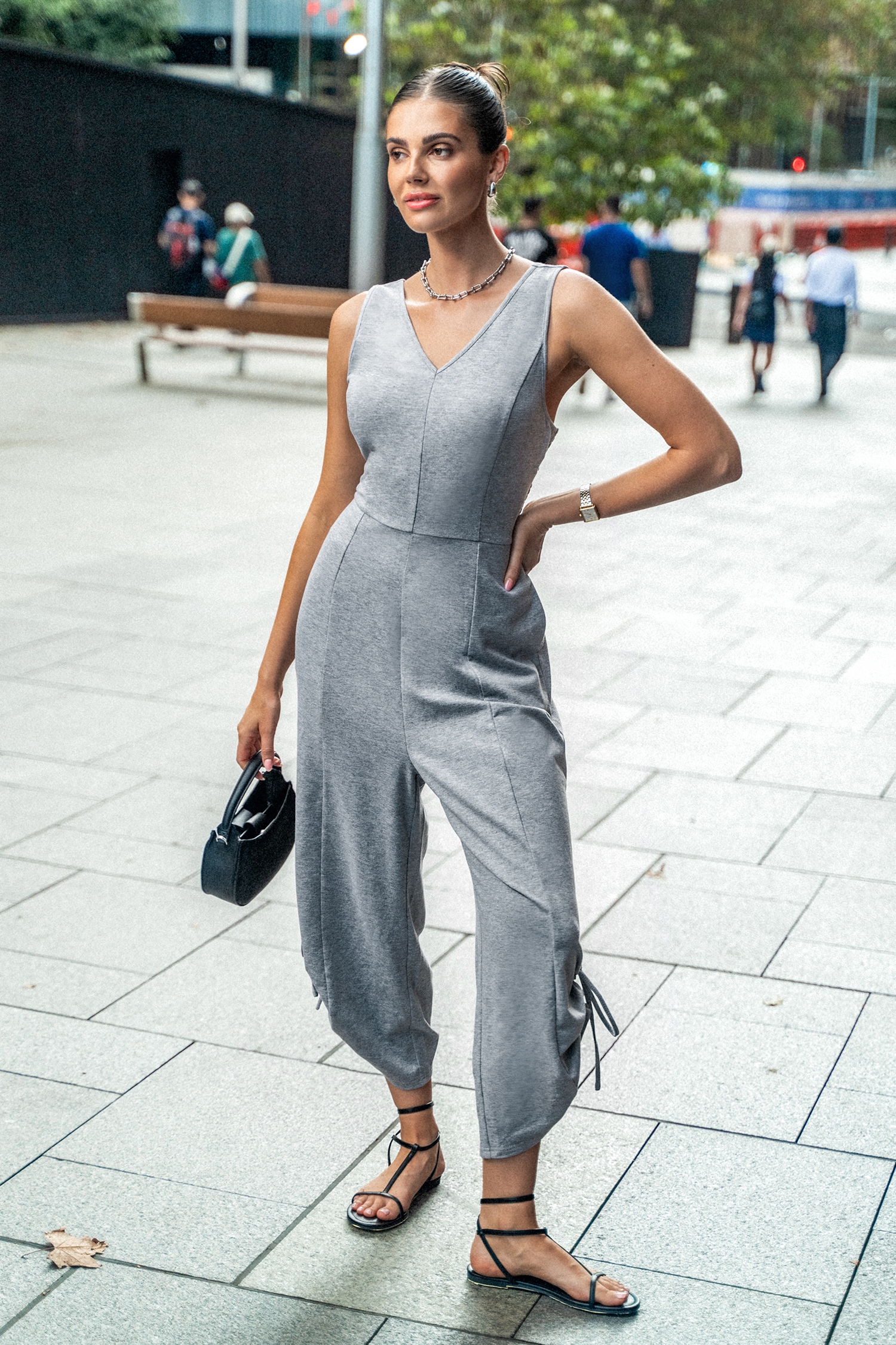 HomeSleeveless V-Neck Wide Leg Jersey Jumpsuit