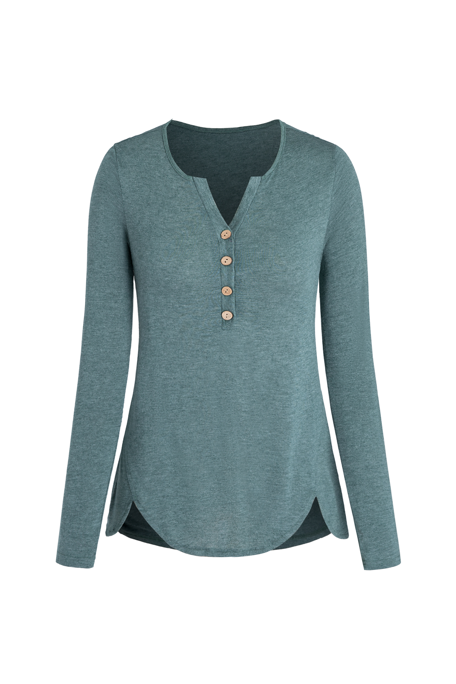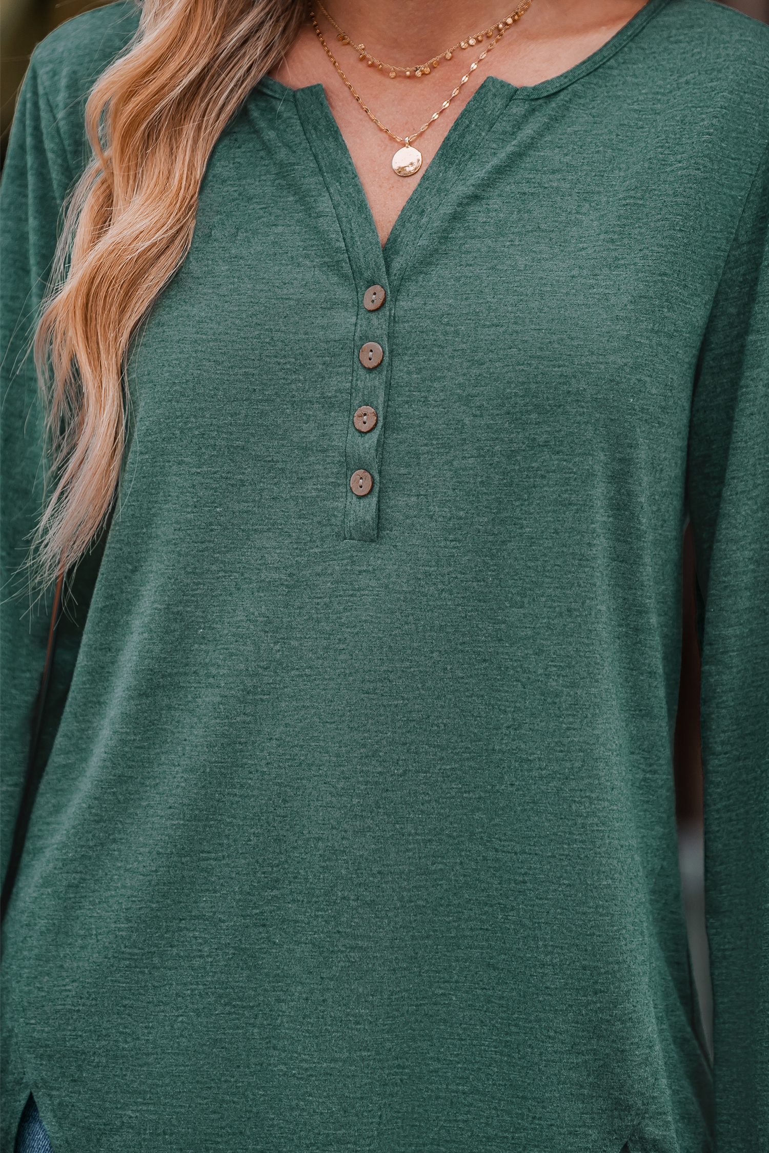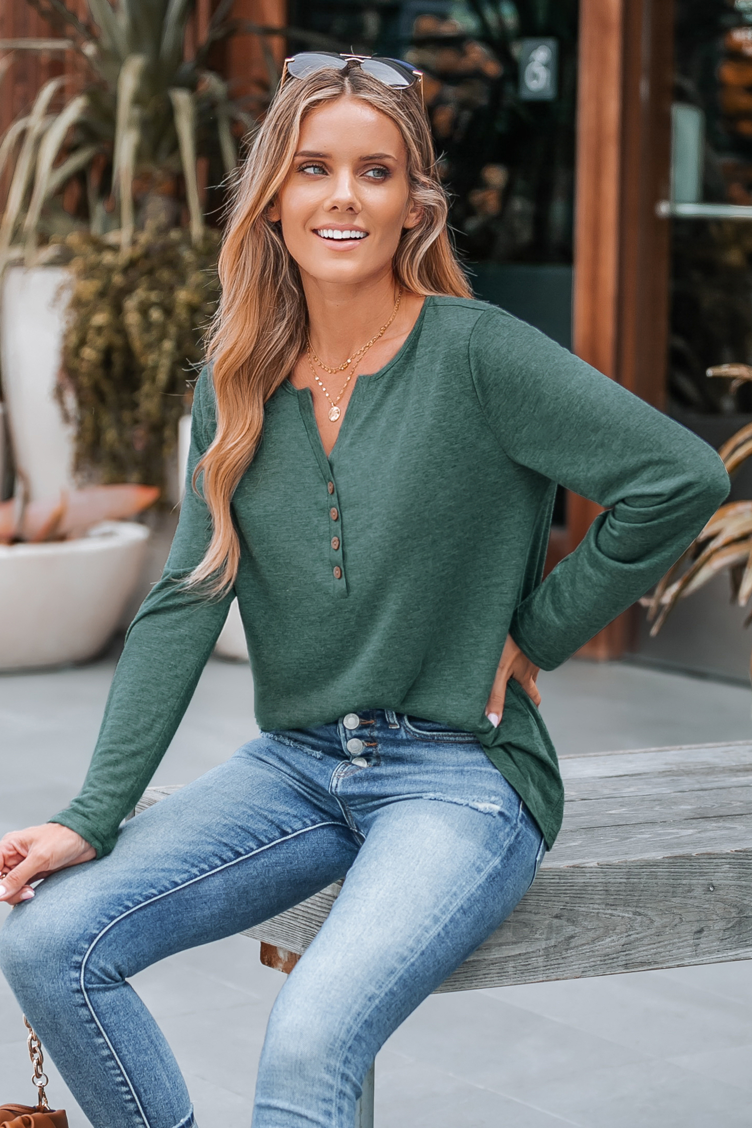 Wrap yourself in comfort and style with our Slub Knit Long Sleeve Henley Tee! With its cozy slub knit fabric, scalloped hem, and classic henley neckline, this tee is the perfect blend of casual and chic, making it a versatile and essential piece for your everyday wardrobe.