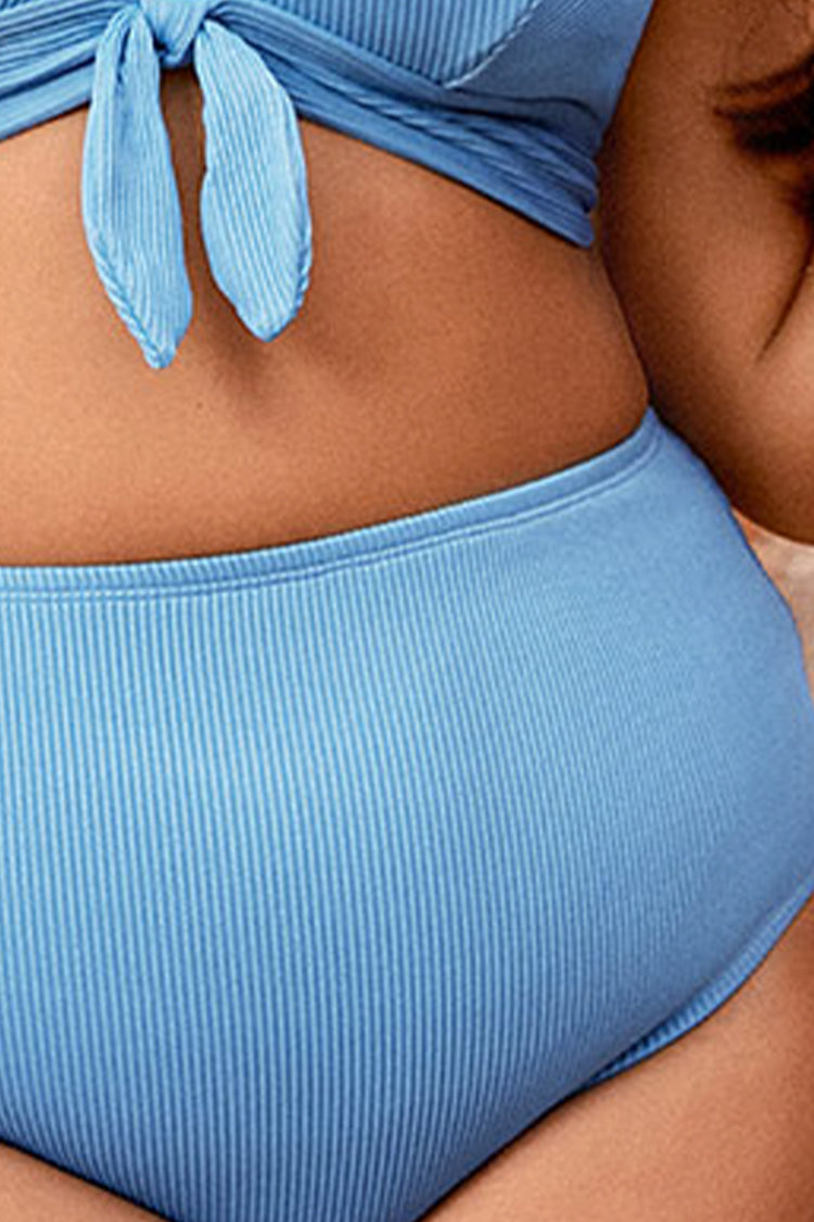 Plus Size Texture Cap Sleeve High Waist Tummy Control Bikini Swimsuit
