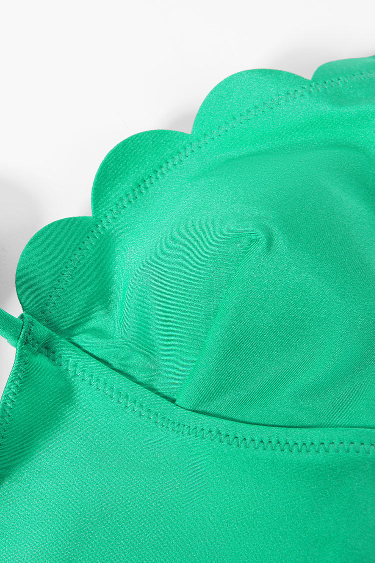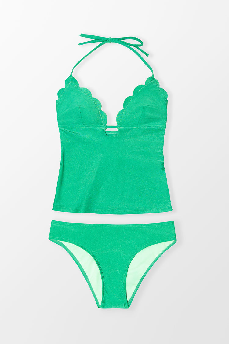 Green Scalloped Keyhole Halter Top & Standard Rise Tankini Set