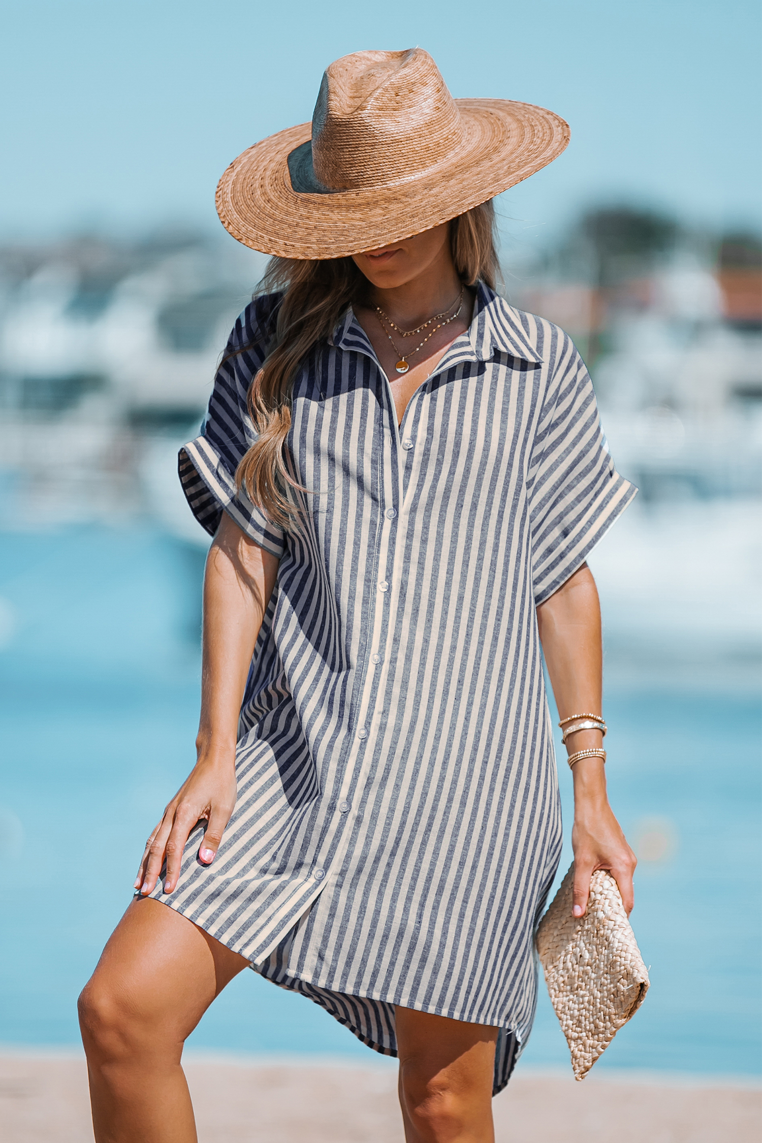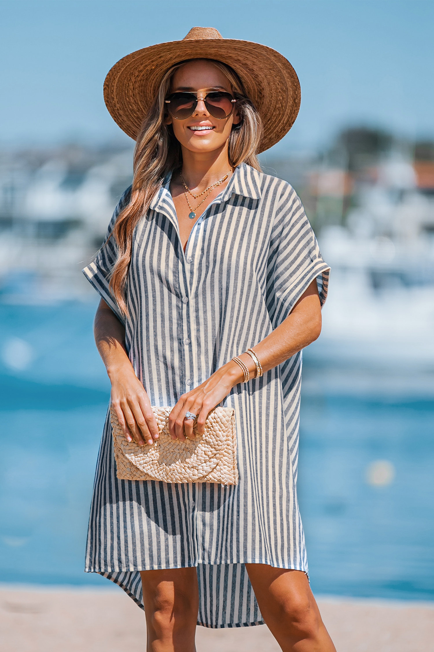 Ladder Cutout Tiered Cover-Up Shirt Dress