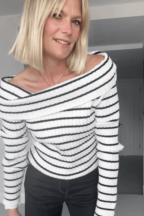 HomeStriped Off-Shoulder Long Sleeve Jumper Top