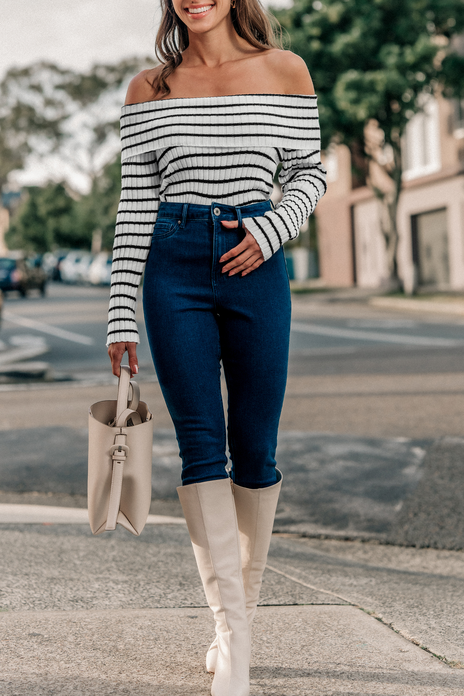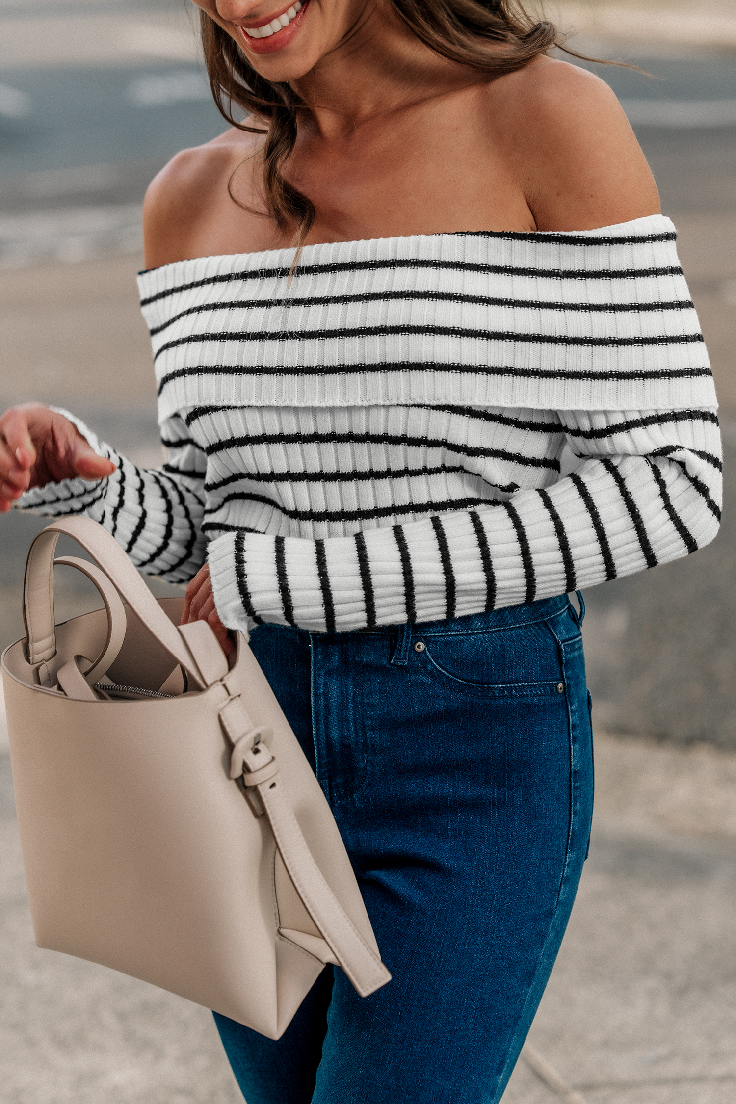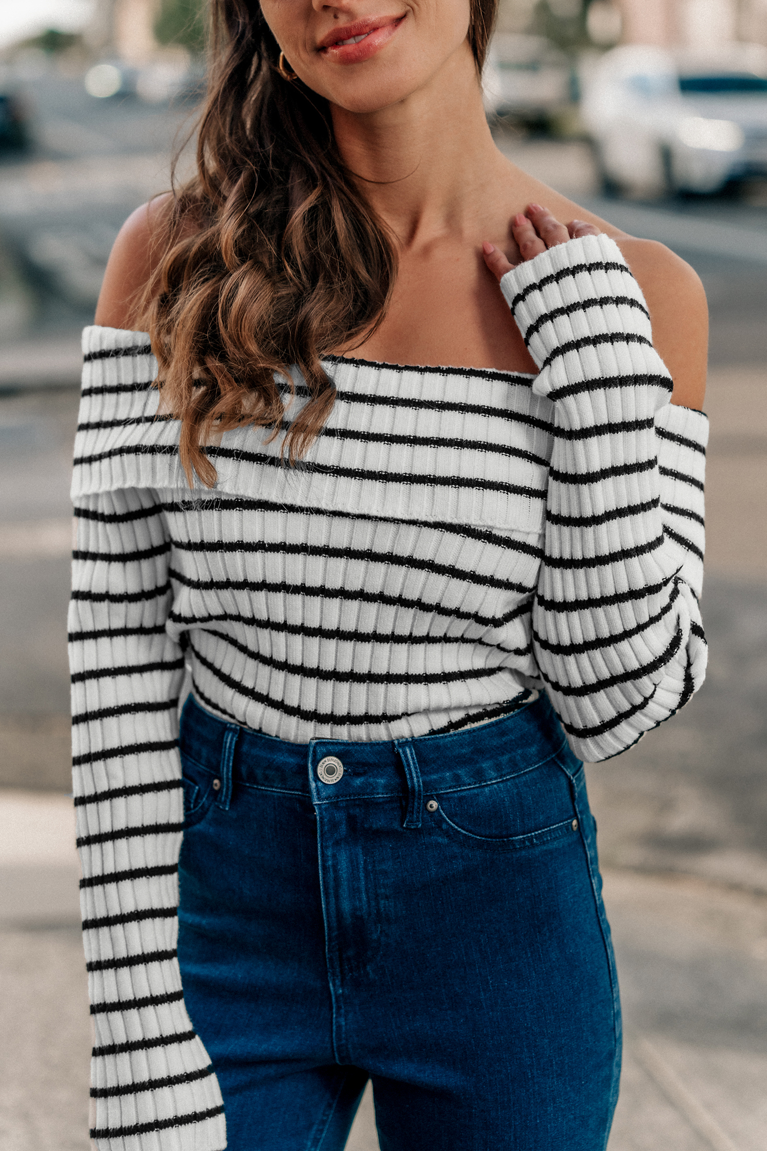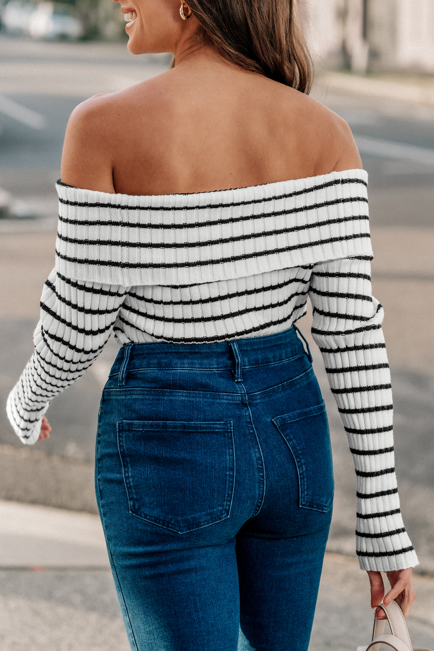 Striped Off-Shoulder Long Sleeve Jumper Top