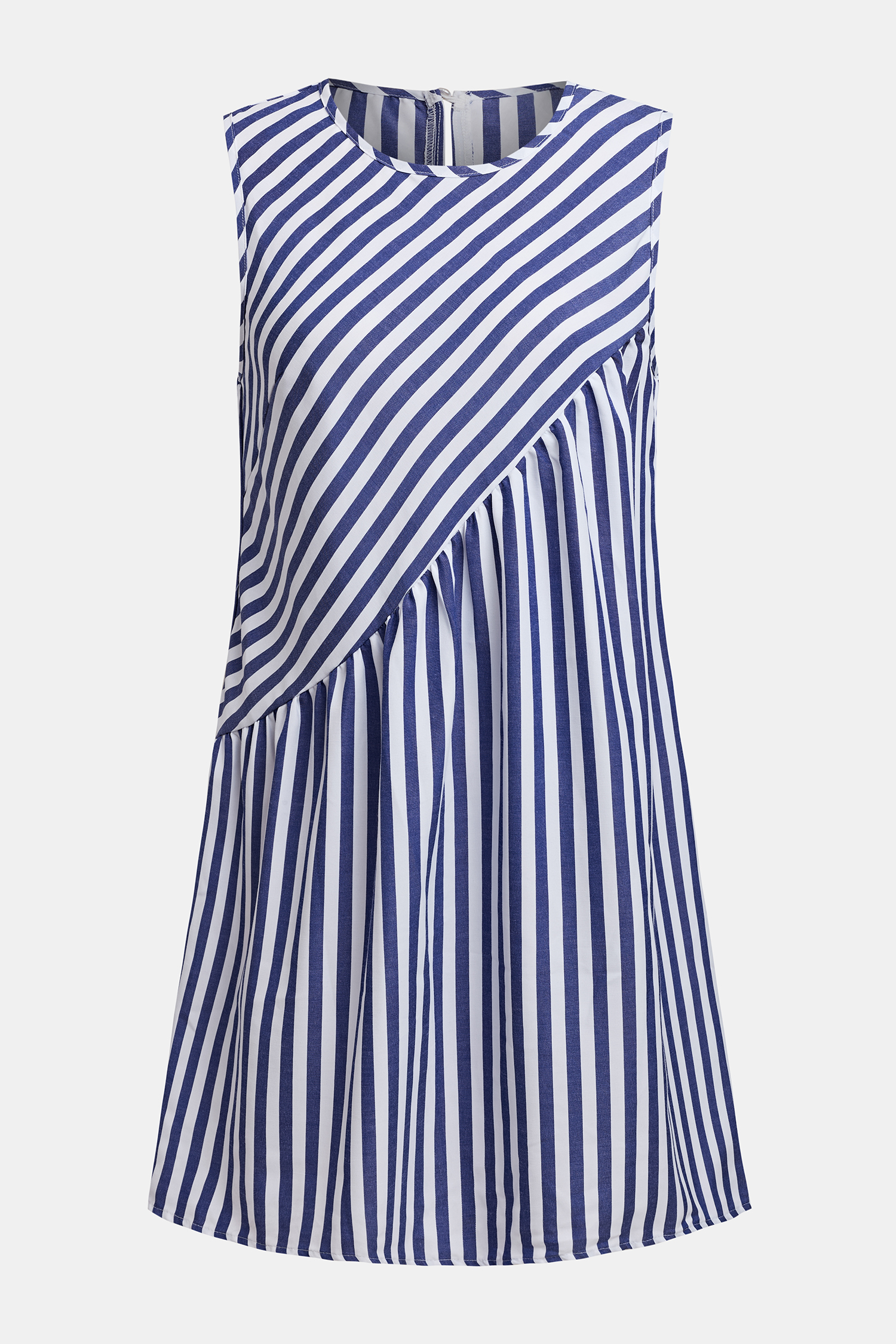 HomeStriped Round Neck Ruched Mini Dress