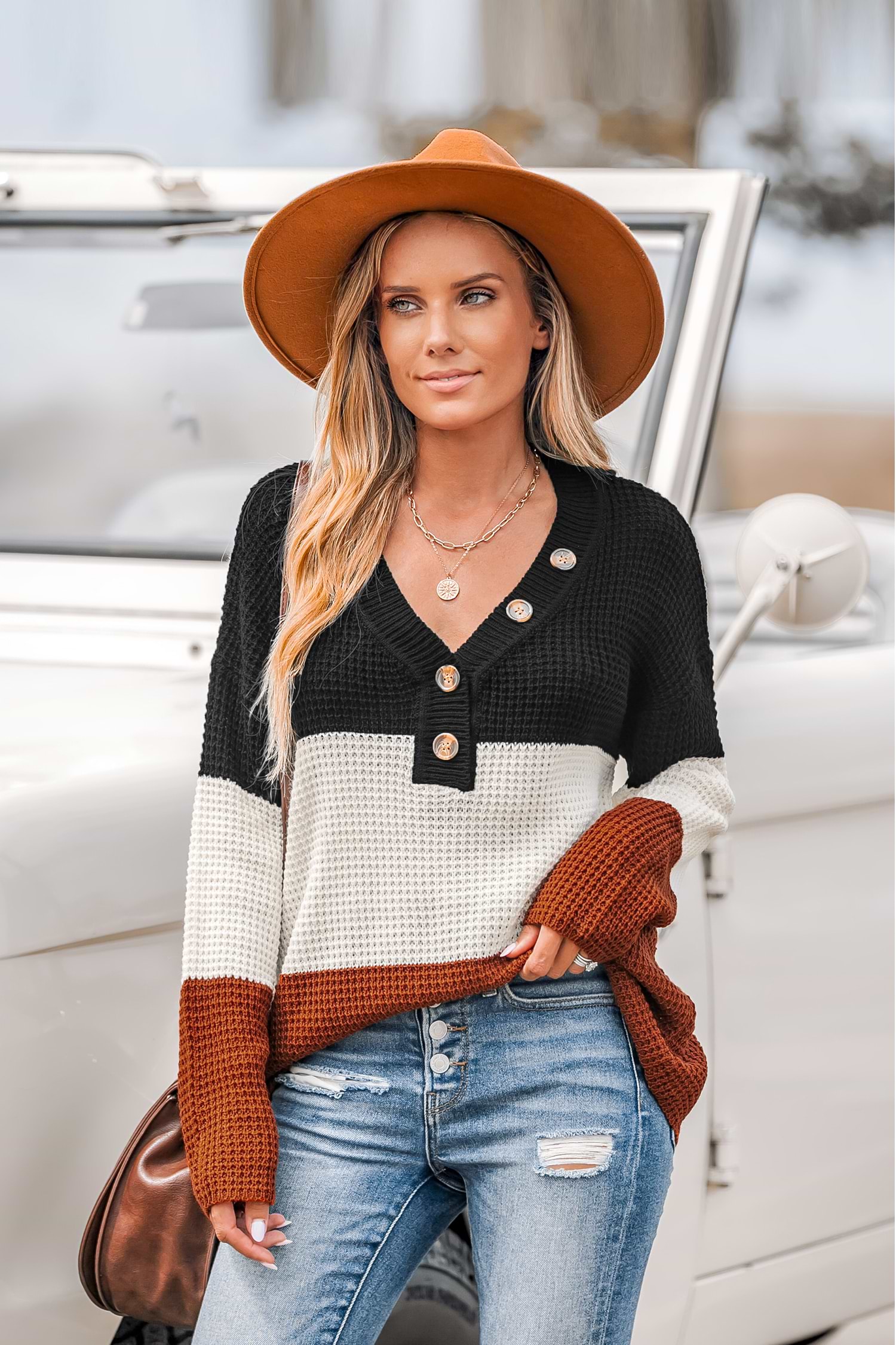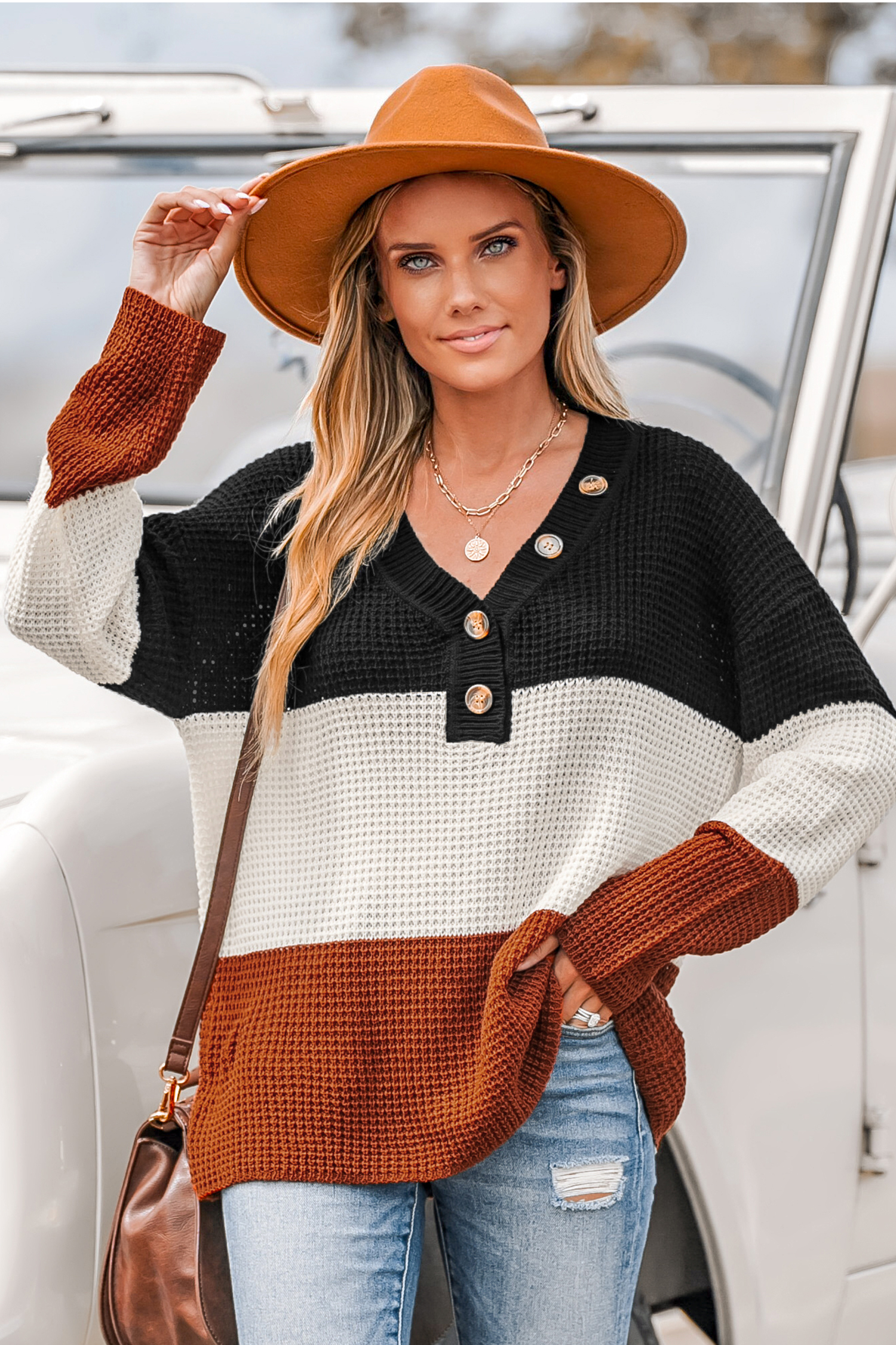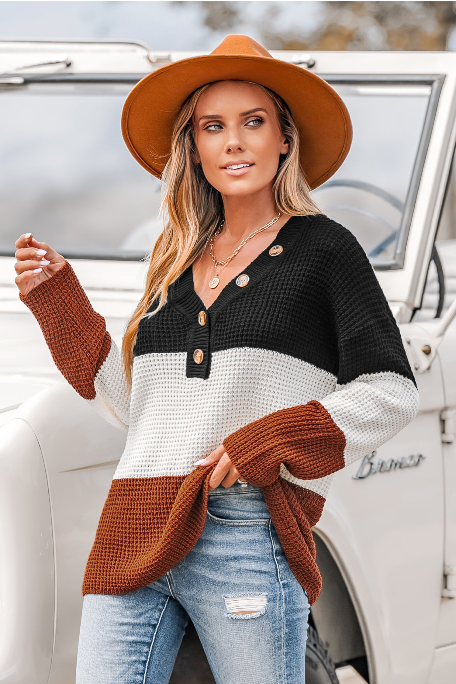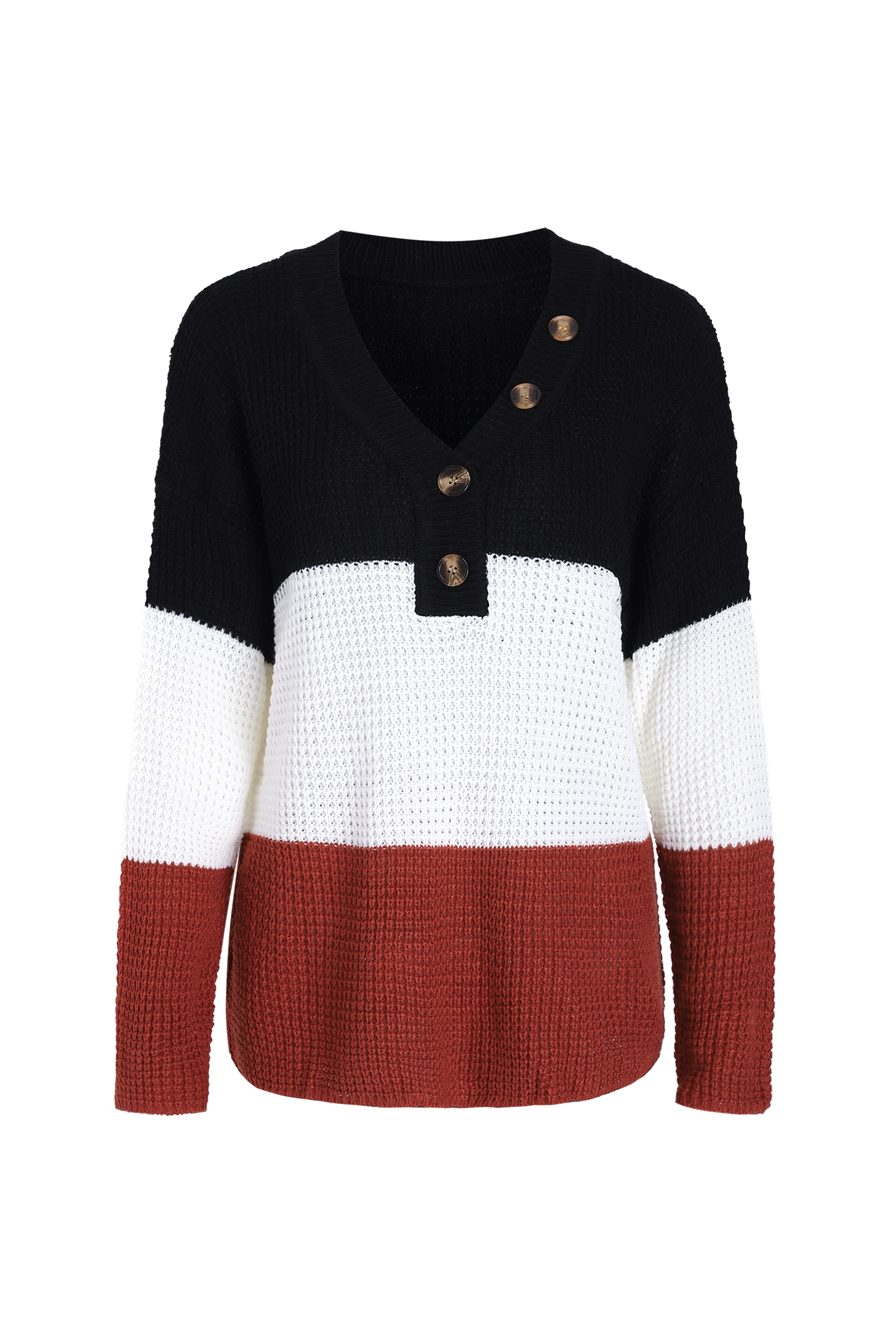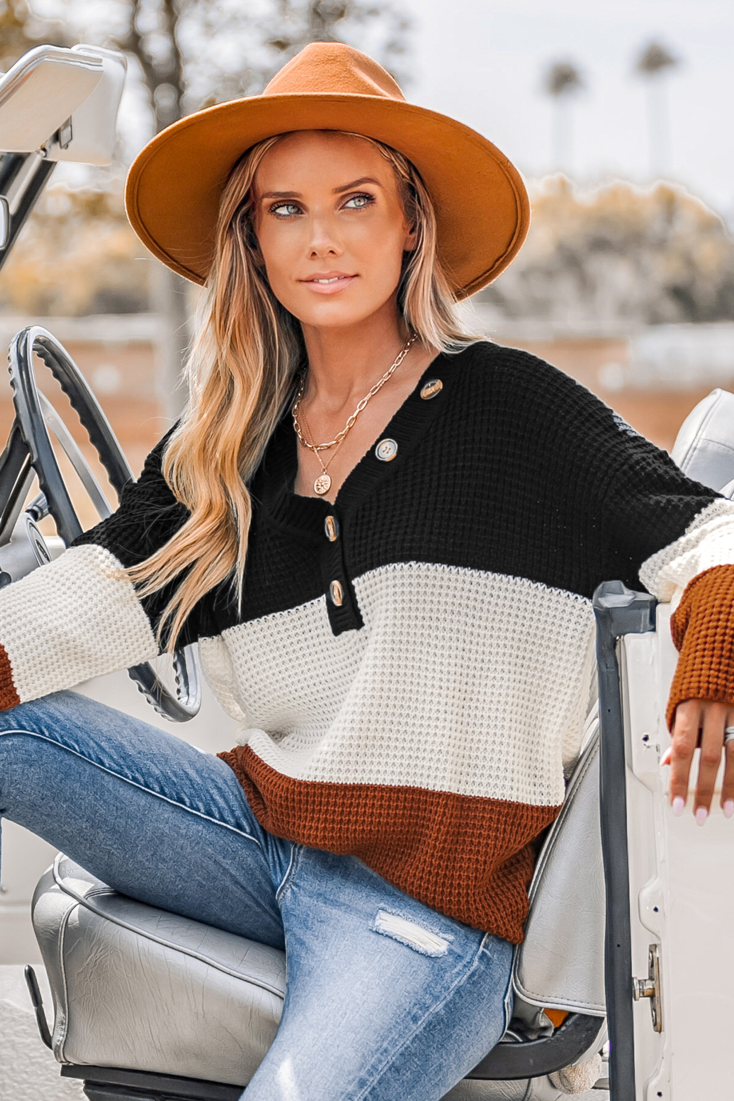 Striped V-Neck Buttoned Jumper