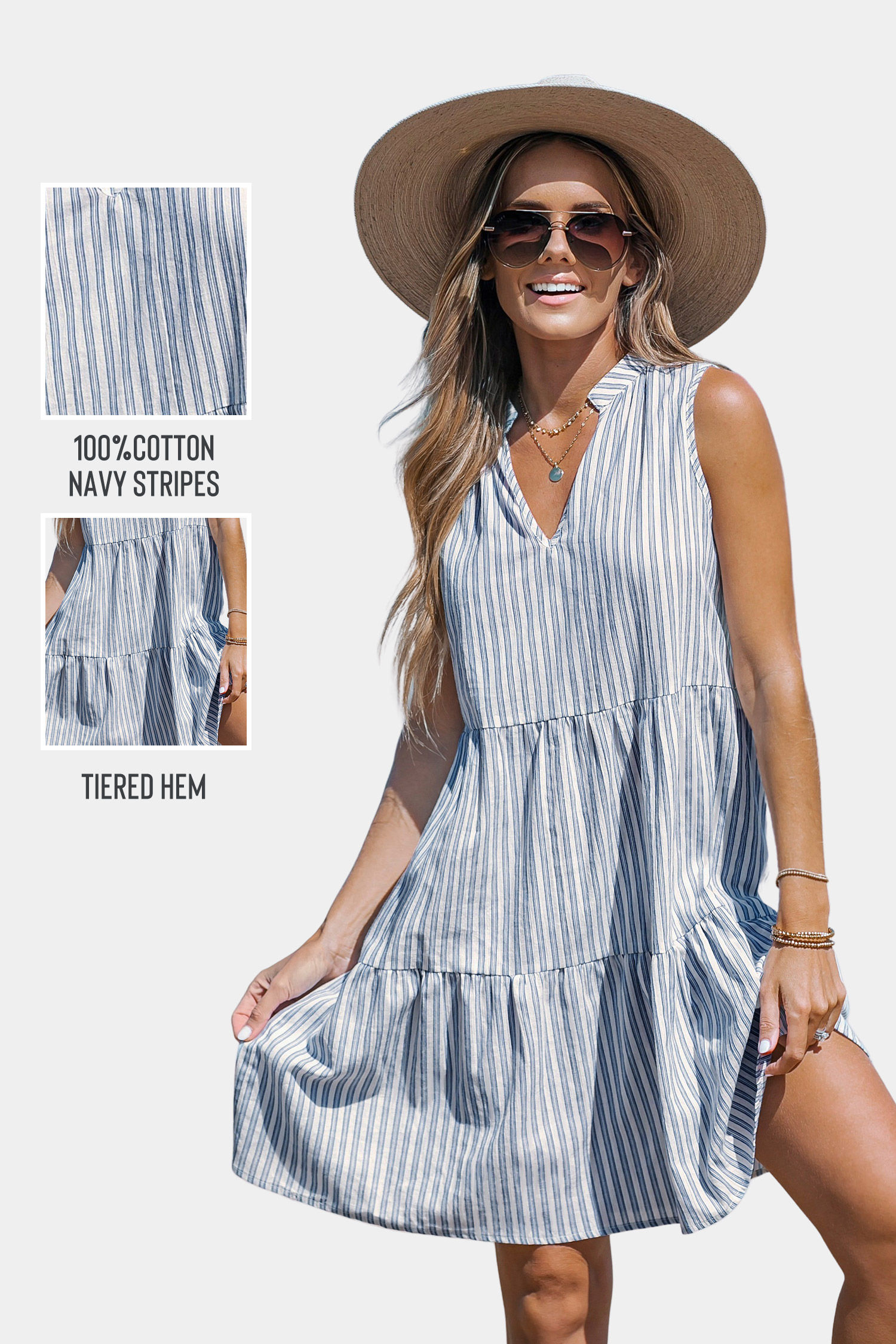 Striped V-Neck Mini Dress