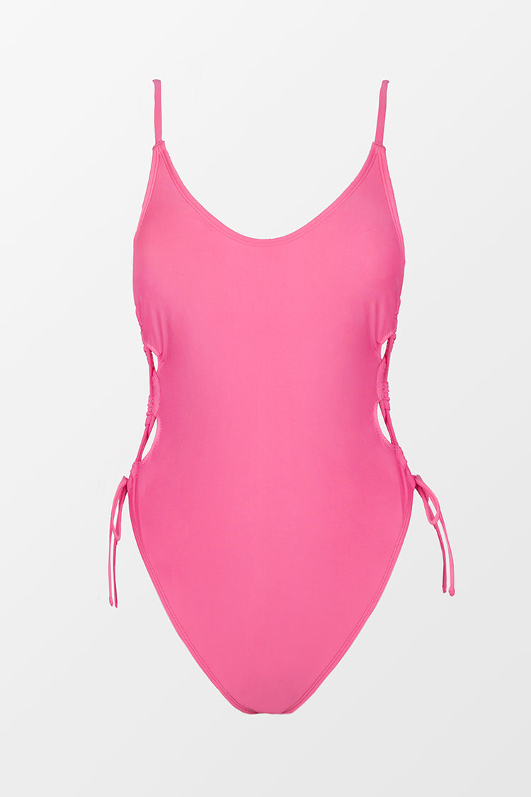 Tunneled Tie Side One Piece Swimsuit-Pink