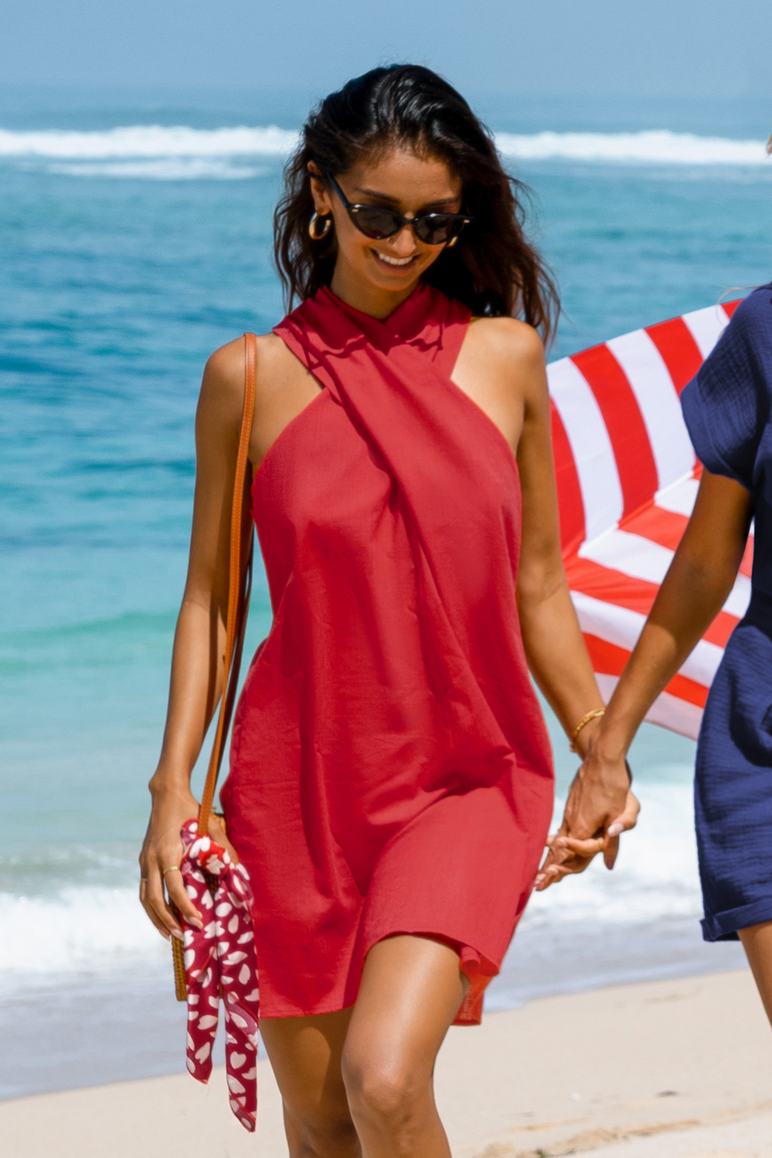 Longline V Neck Bralette & Navy Classic High Waist Bikini Set
