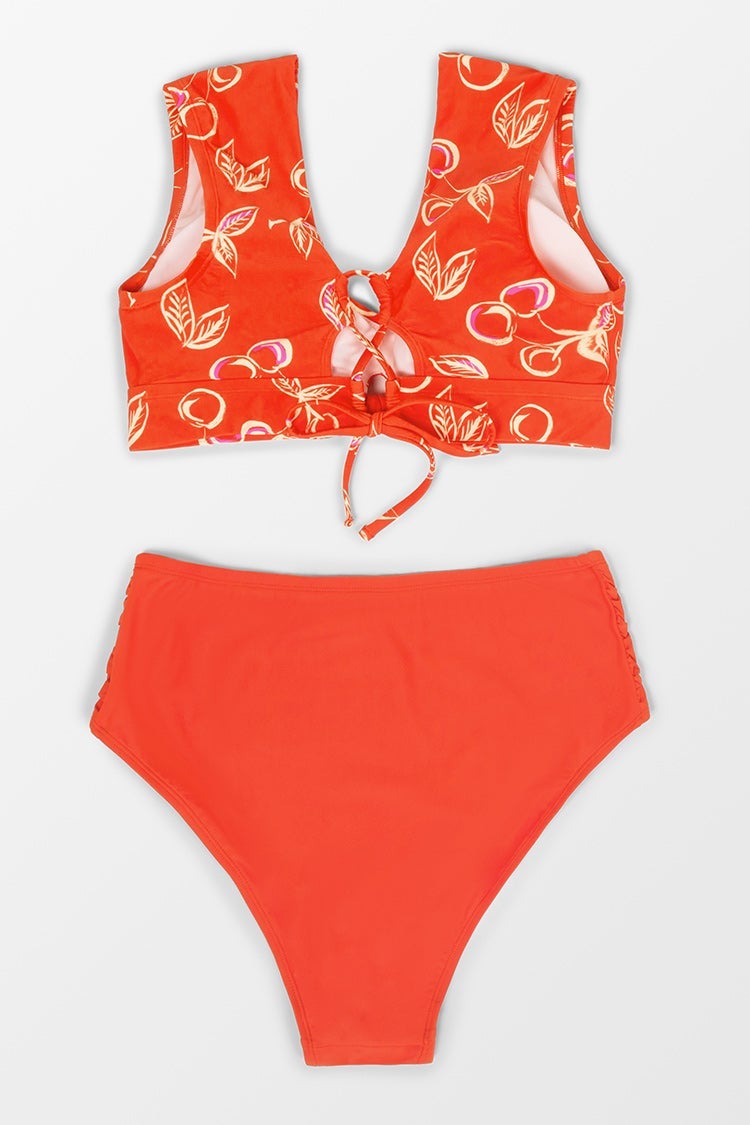 HomePlus Size Red Tummy Control Bikini Swimsuit