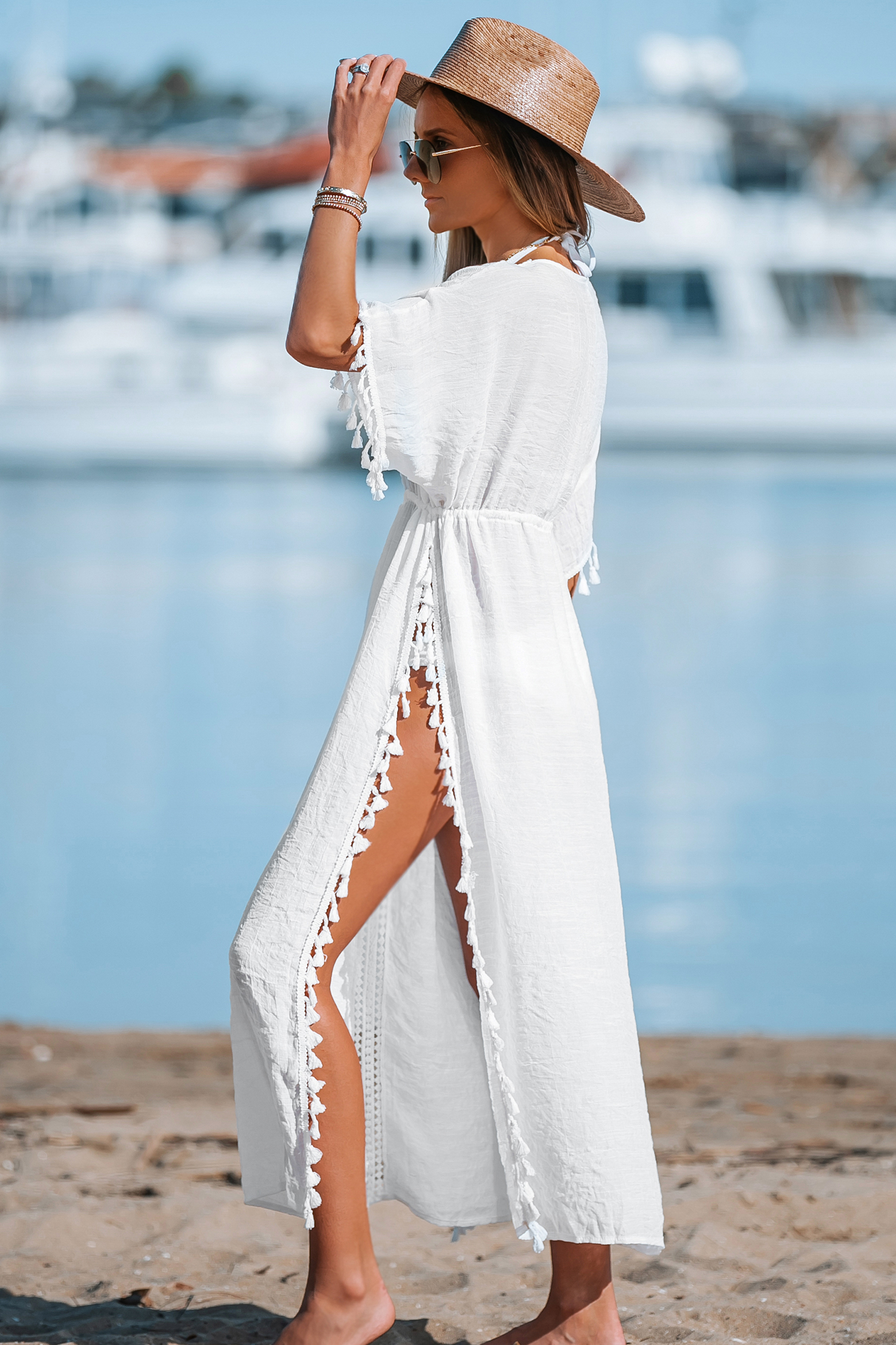 HomeTassel Drawstring Cover-Up Dress