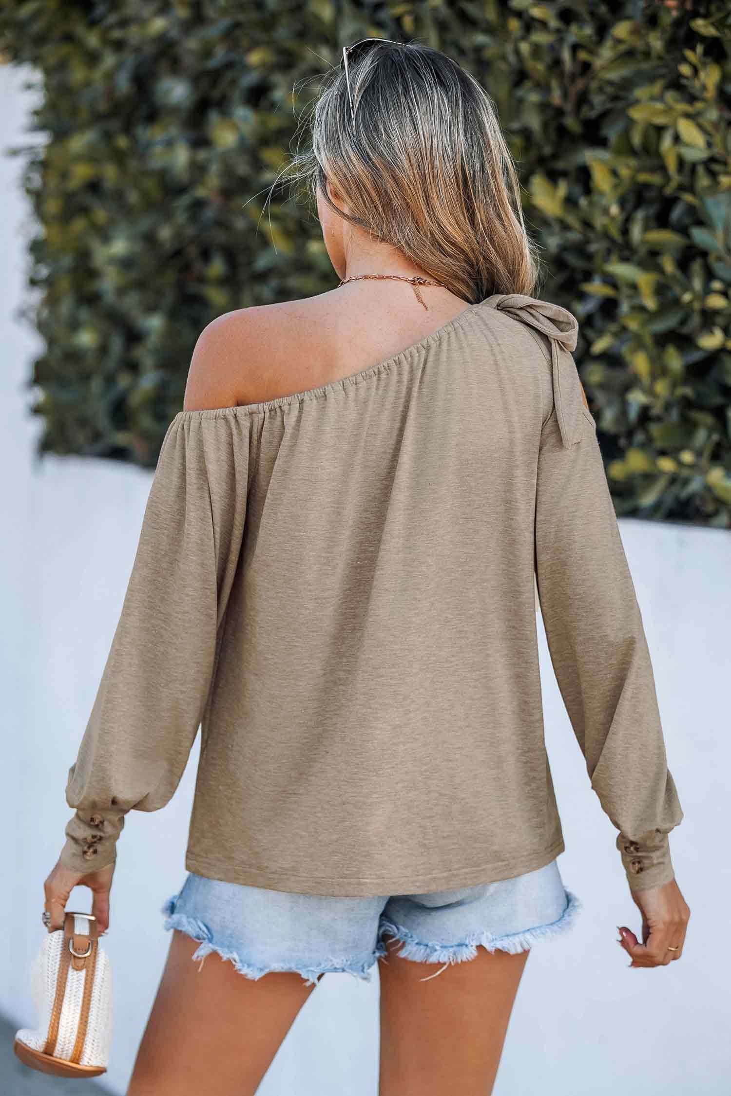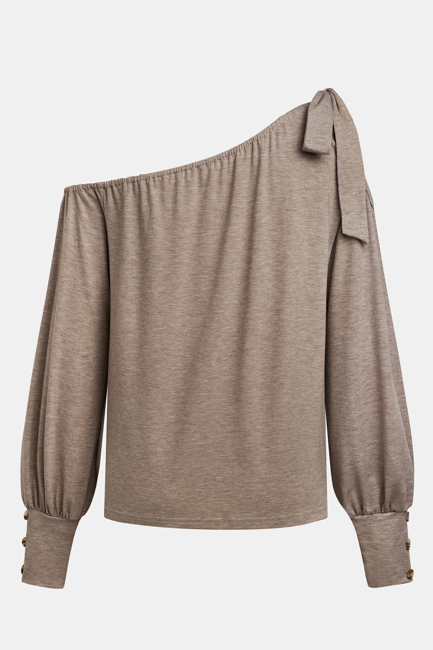 HomeTaupe Bow Off-Shoulder Long Sleeve Tee