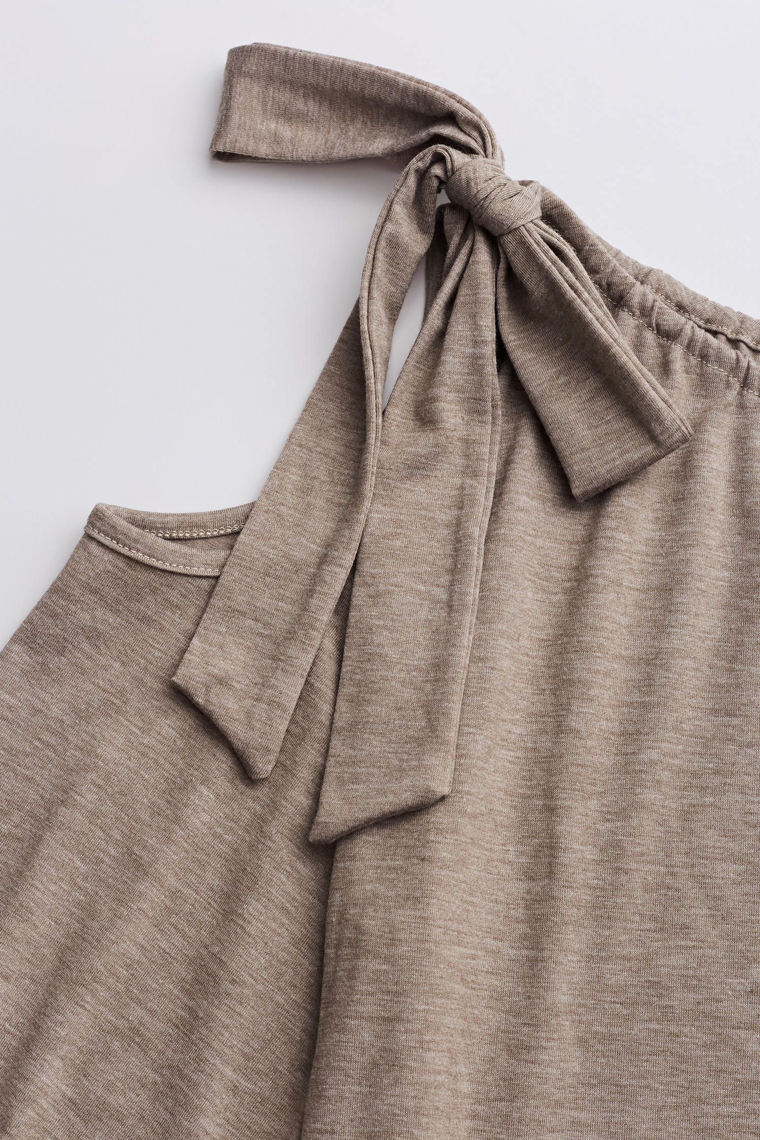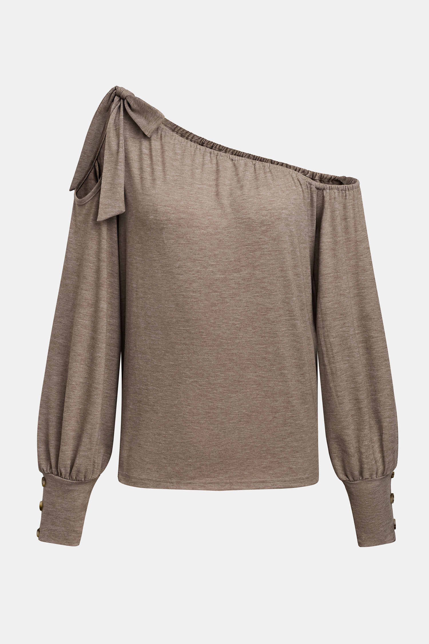 Taupe Bow Off-Shoulder Long Sleeve Tee