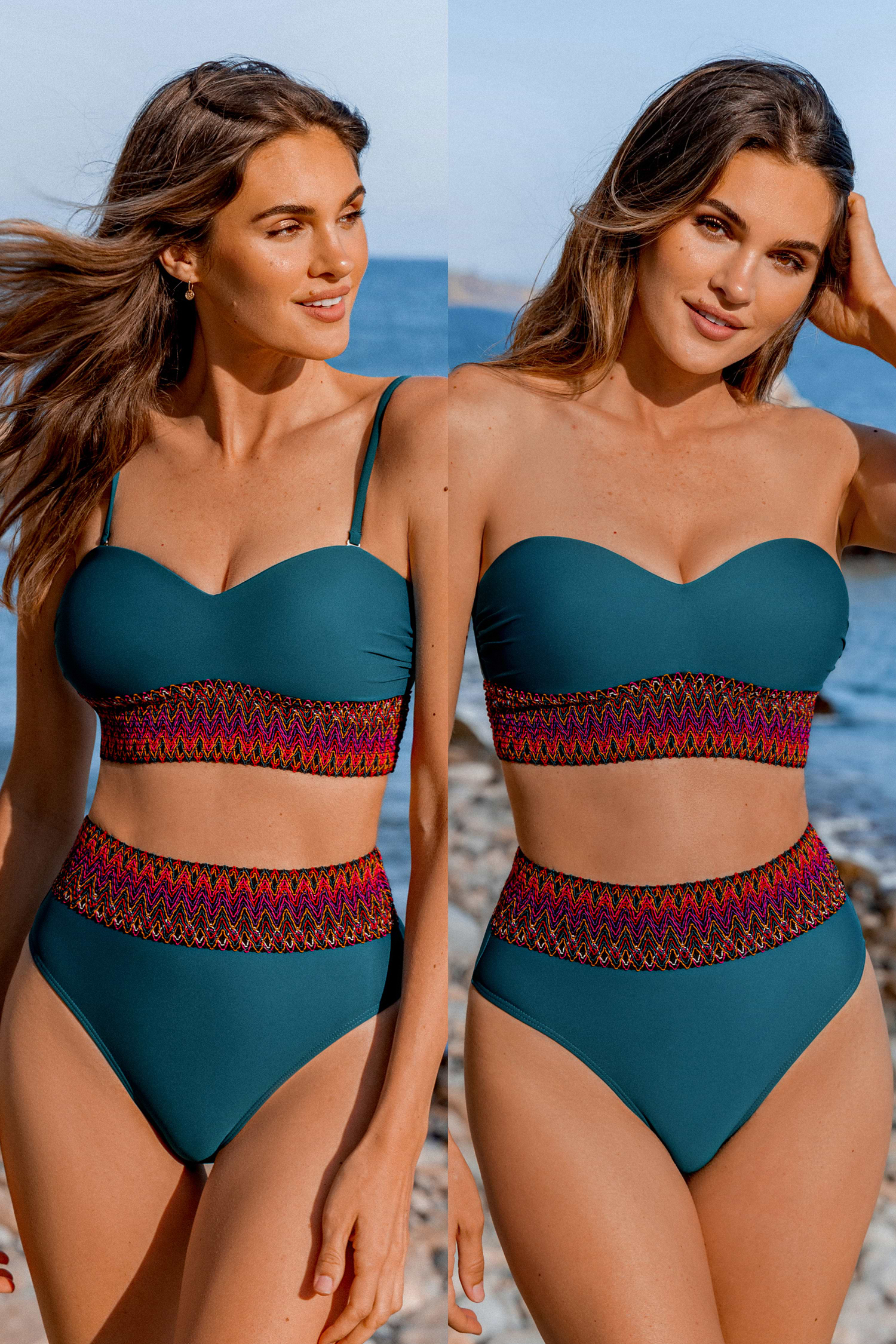 Teal Sweetheart Push-Up Bikini Top & High-Rise Bottoms Set