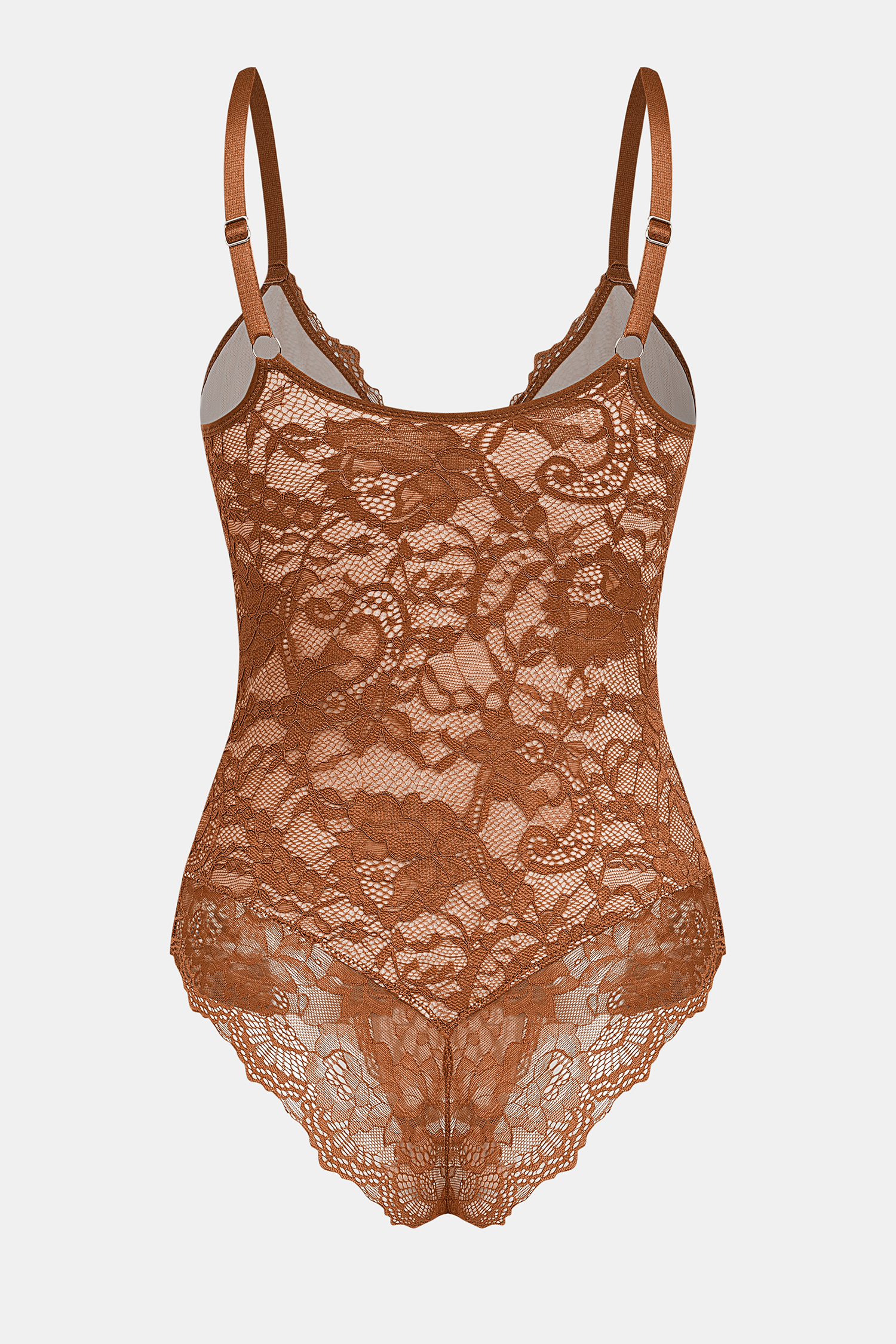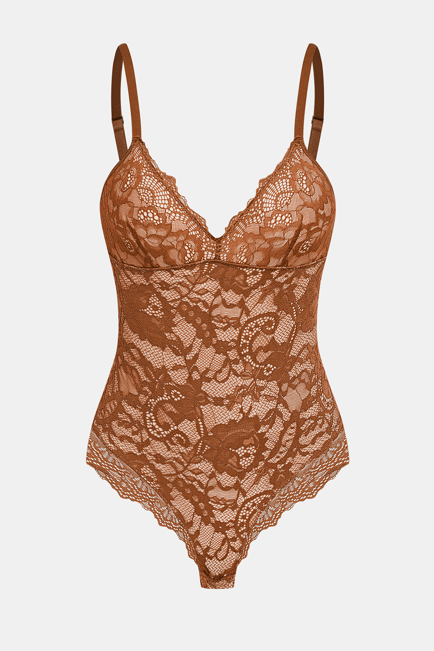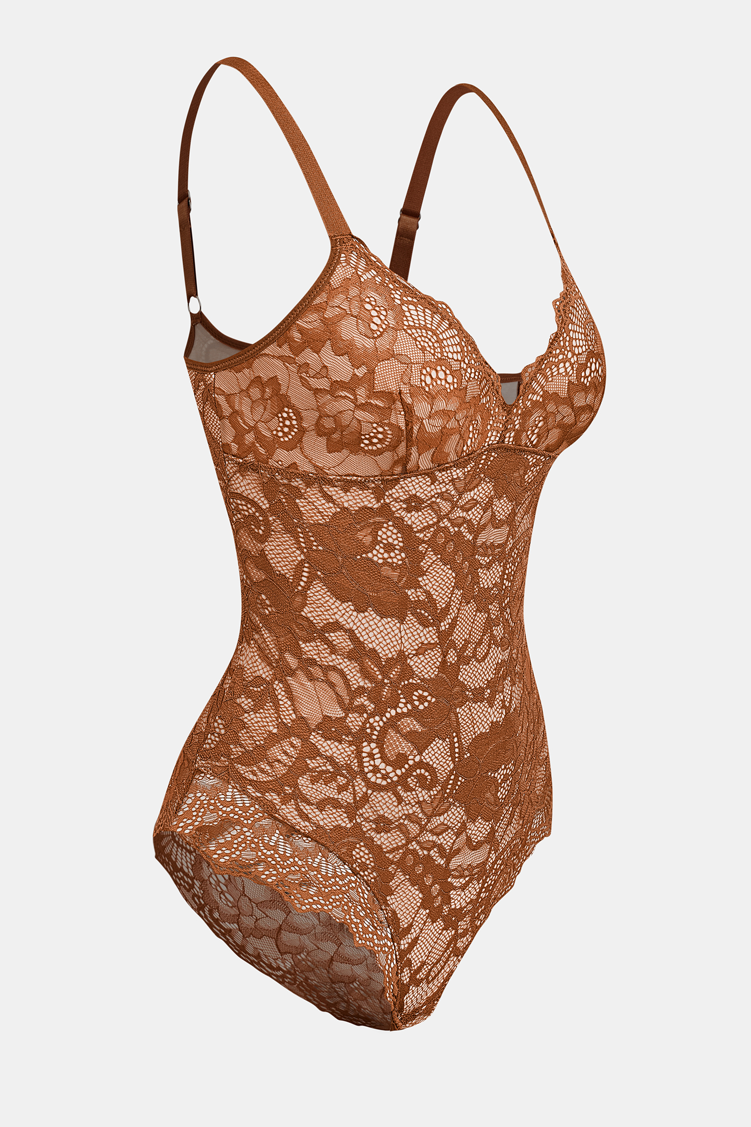 The Tempted Brown Shapewear Bodysuit brings flirty, confident energy to any look! This bodysuit features adjustable straps and sheer lace for a delicate, alluring finish.