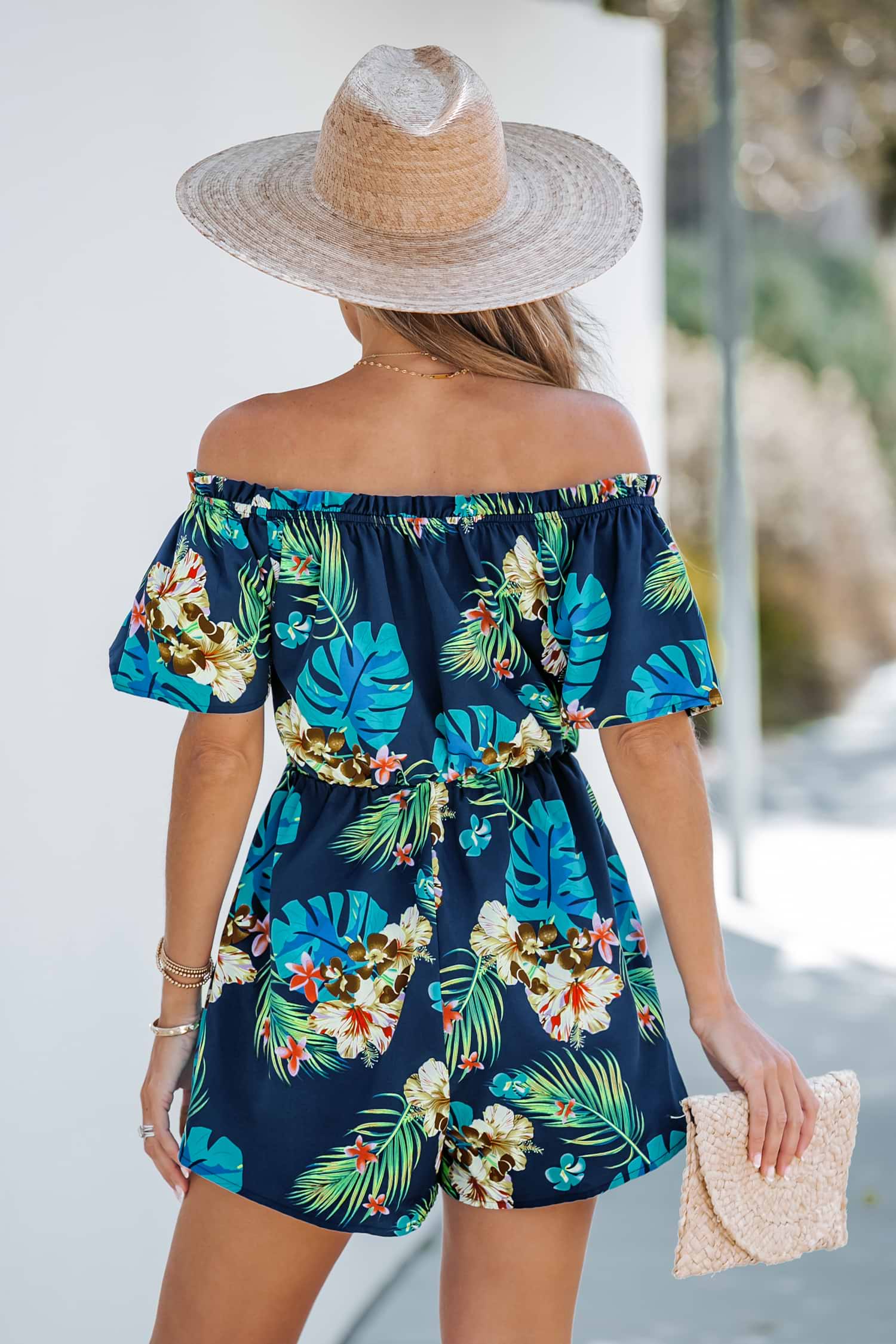 Tropical Floral Leaf Off-the-Shoulder Romper