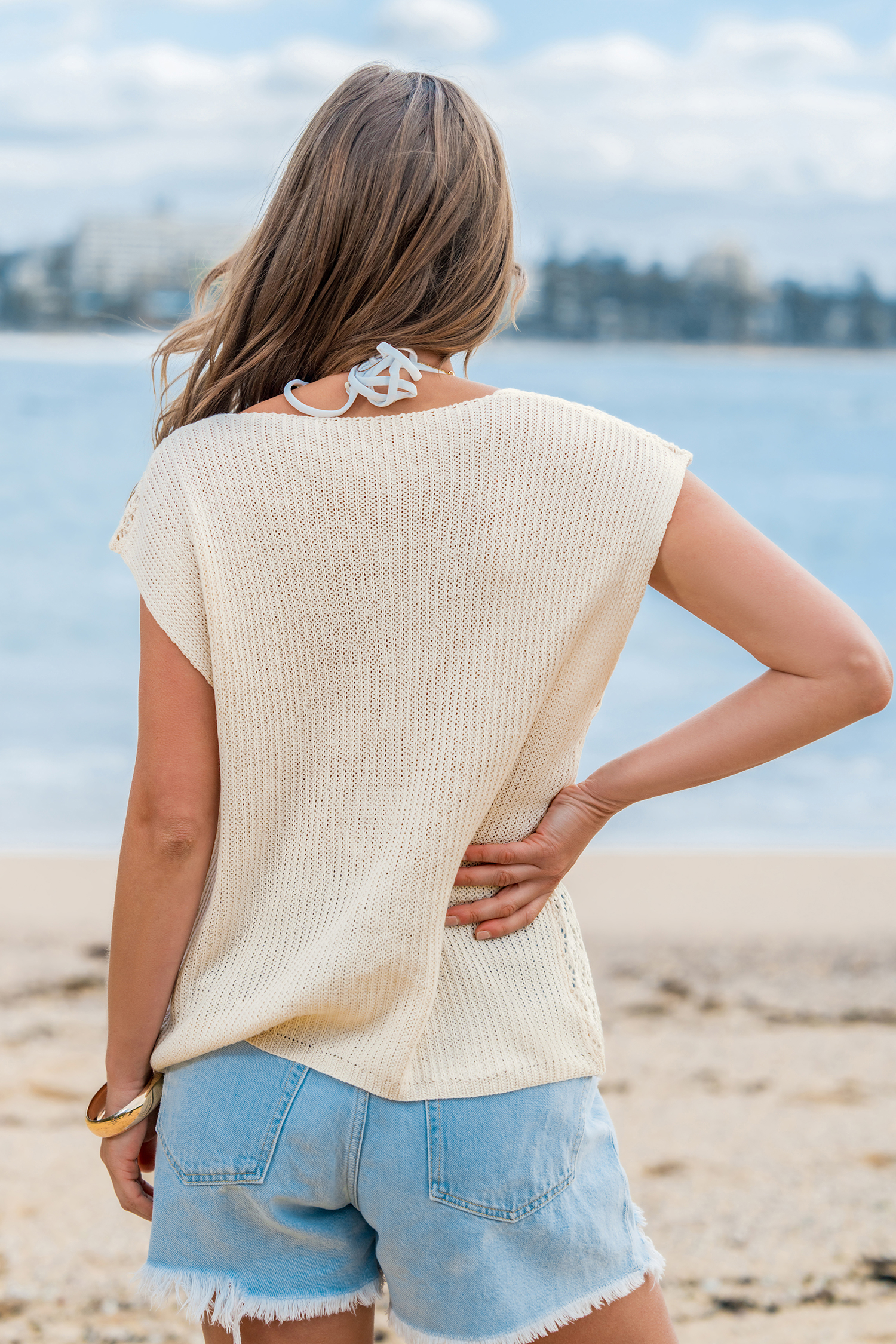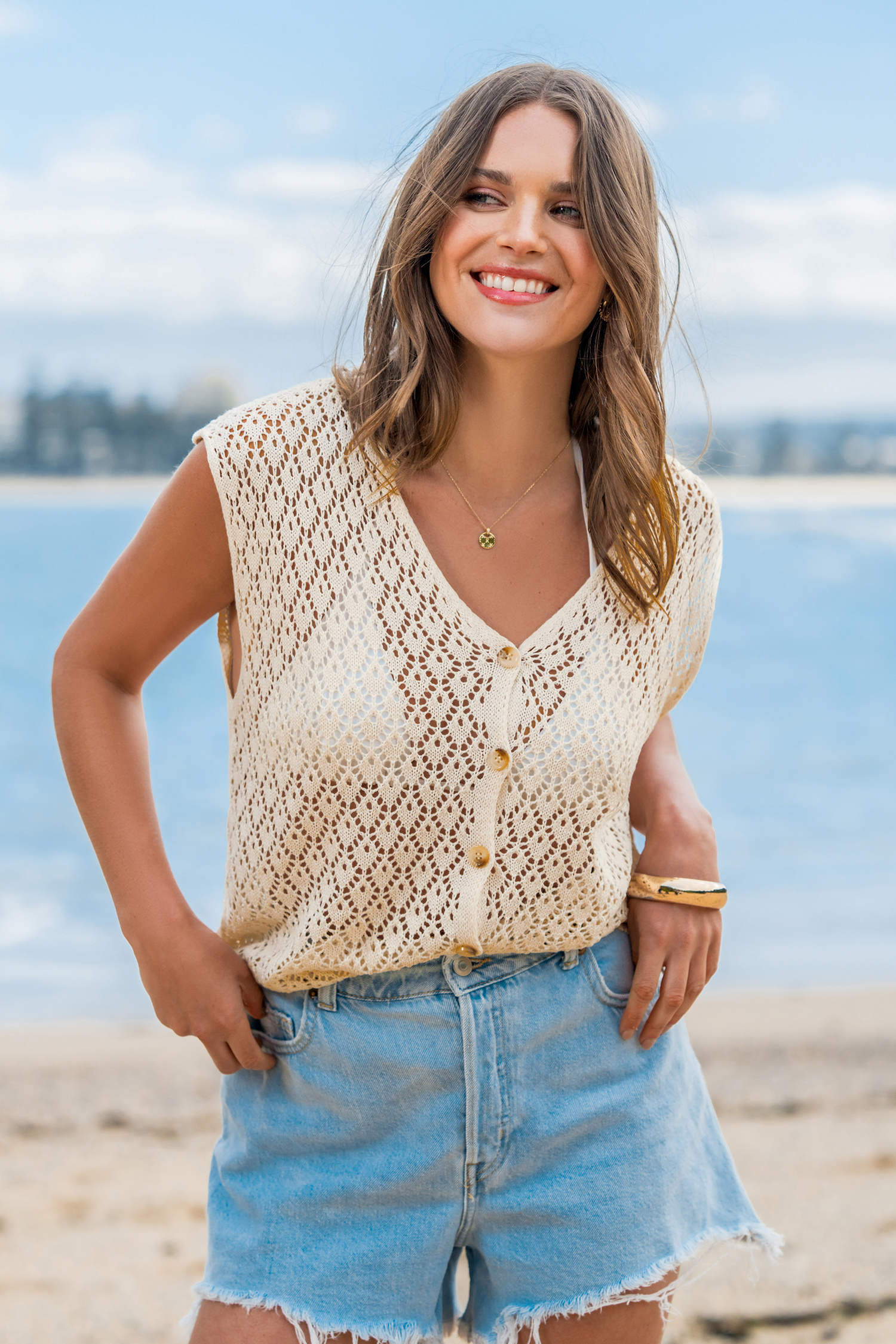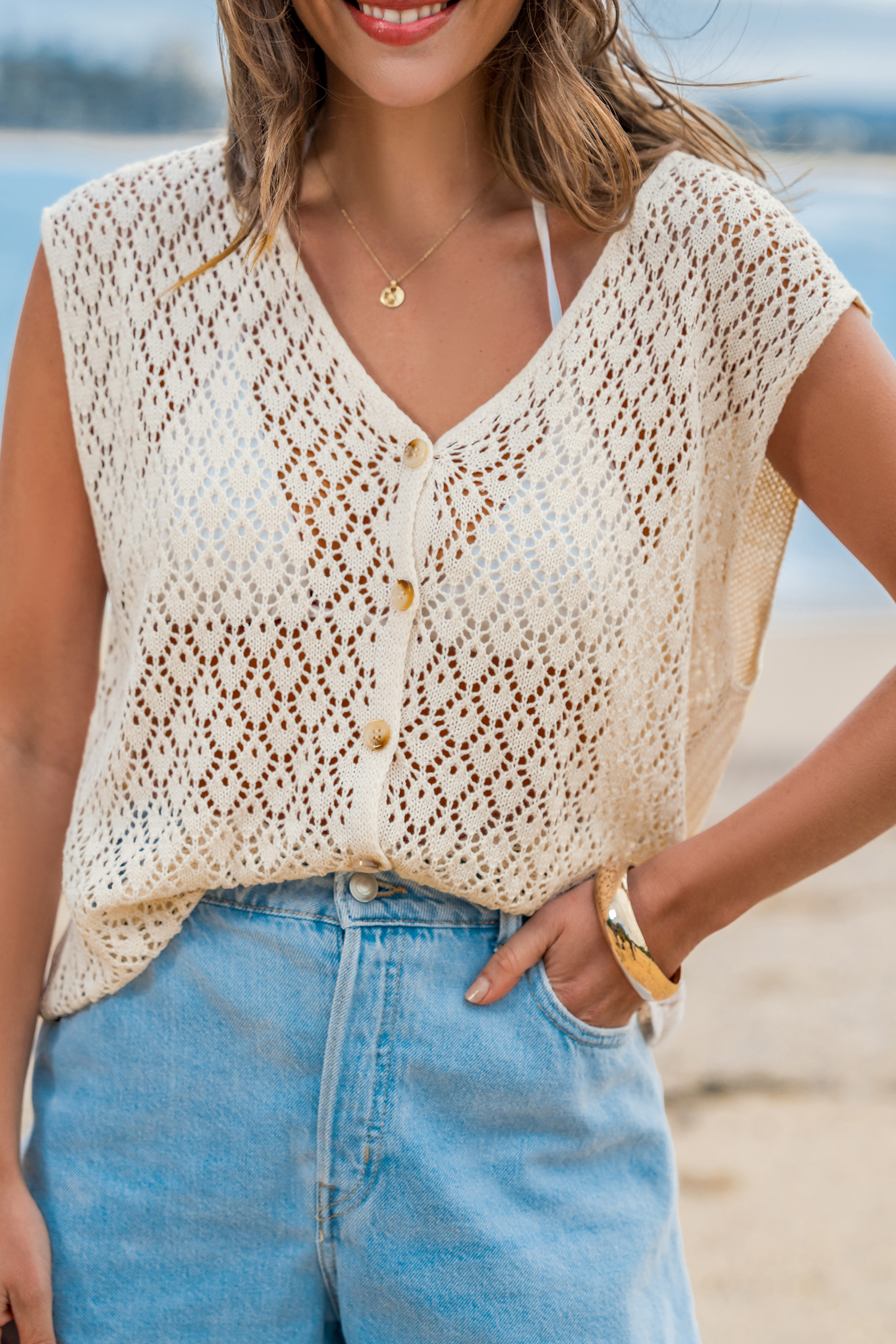 V-Neck Cap Sleeve Button Up Cover-Up Top