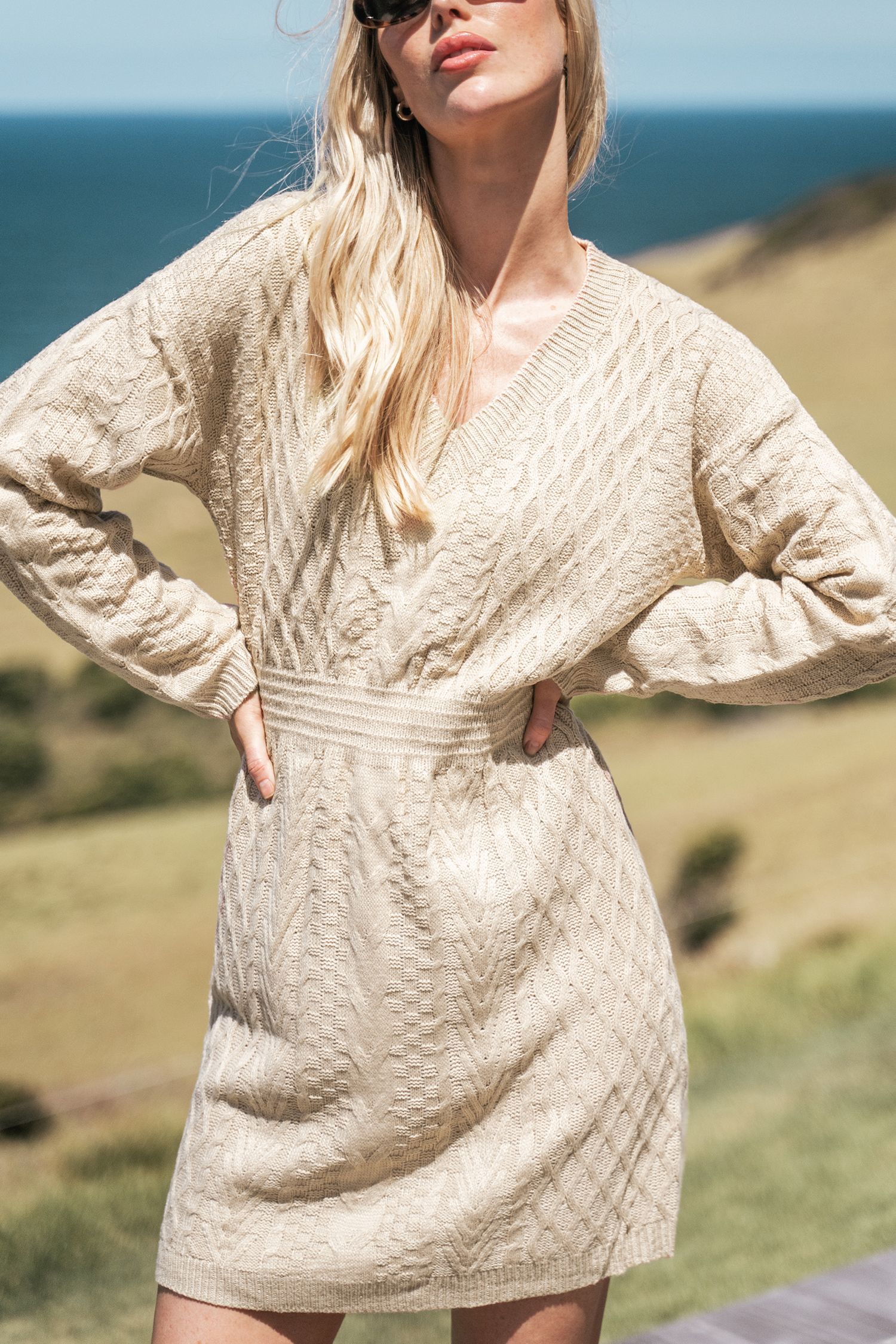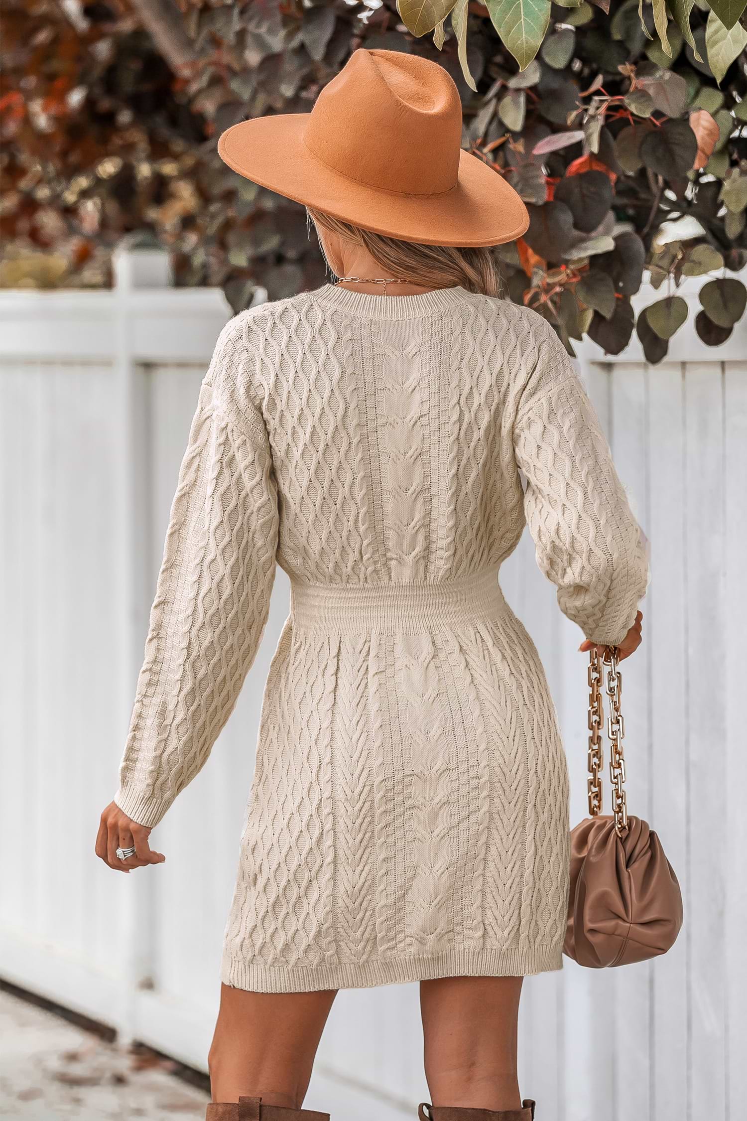 V-Neck Ribbed Cable Knit Jumper Dress