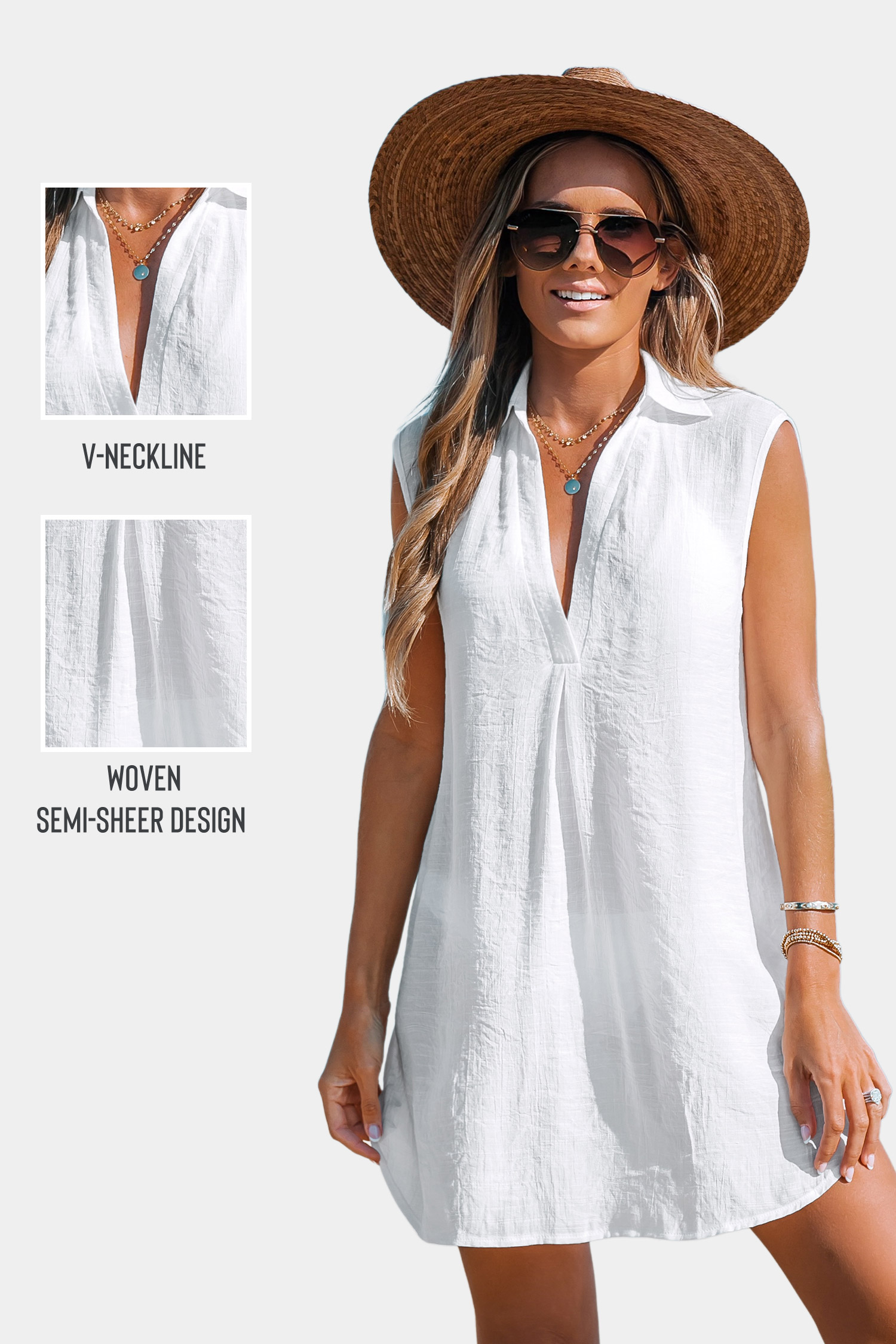 Ladder Cutout Tiered Cover-Up Shirt Dress