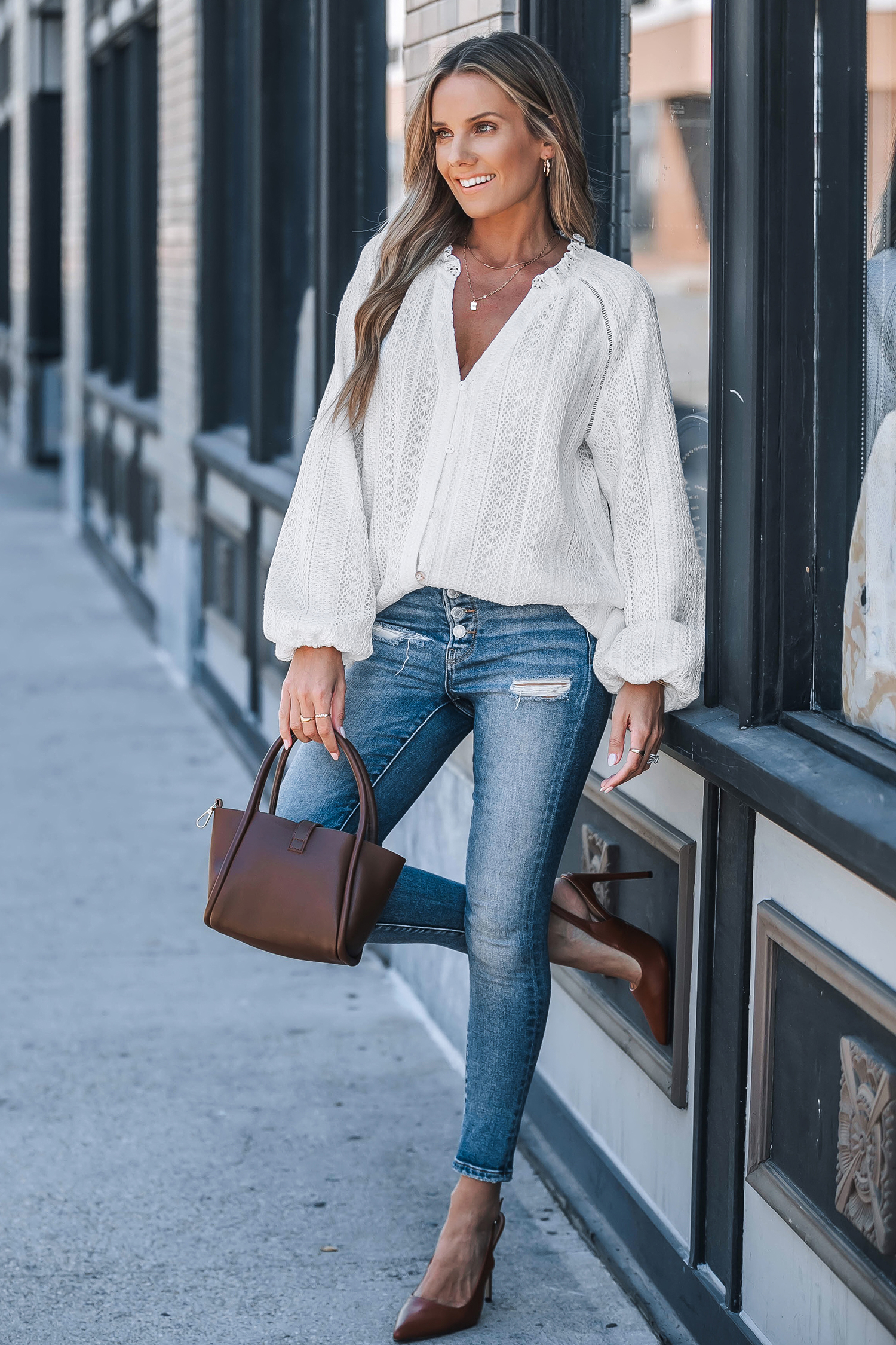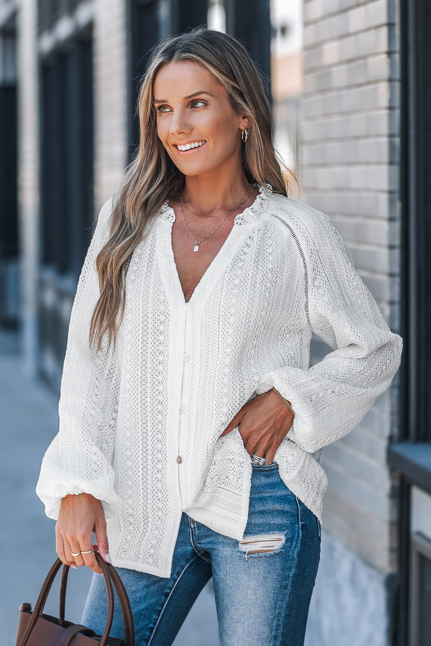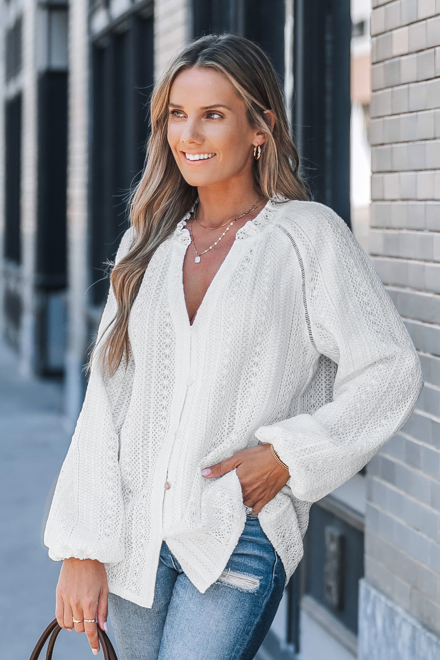 HomeWhite Cotton Blend Puff Sleeve Blouse