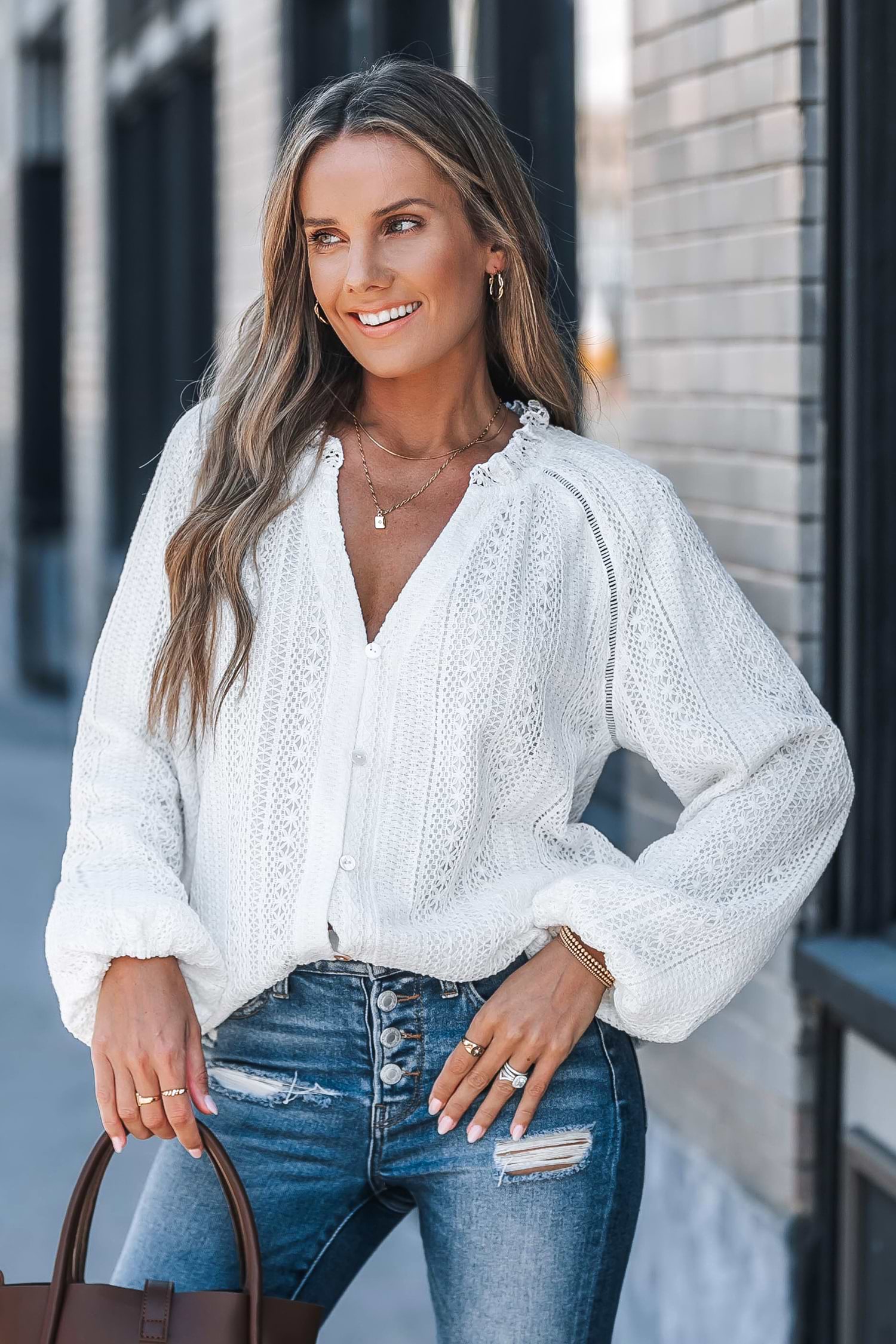 White Cotton Blend Puff Sleeve Blouse