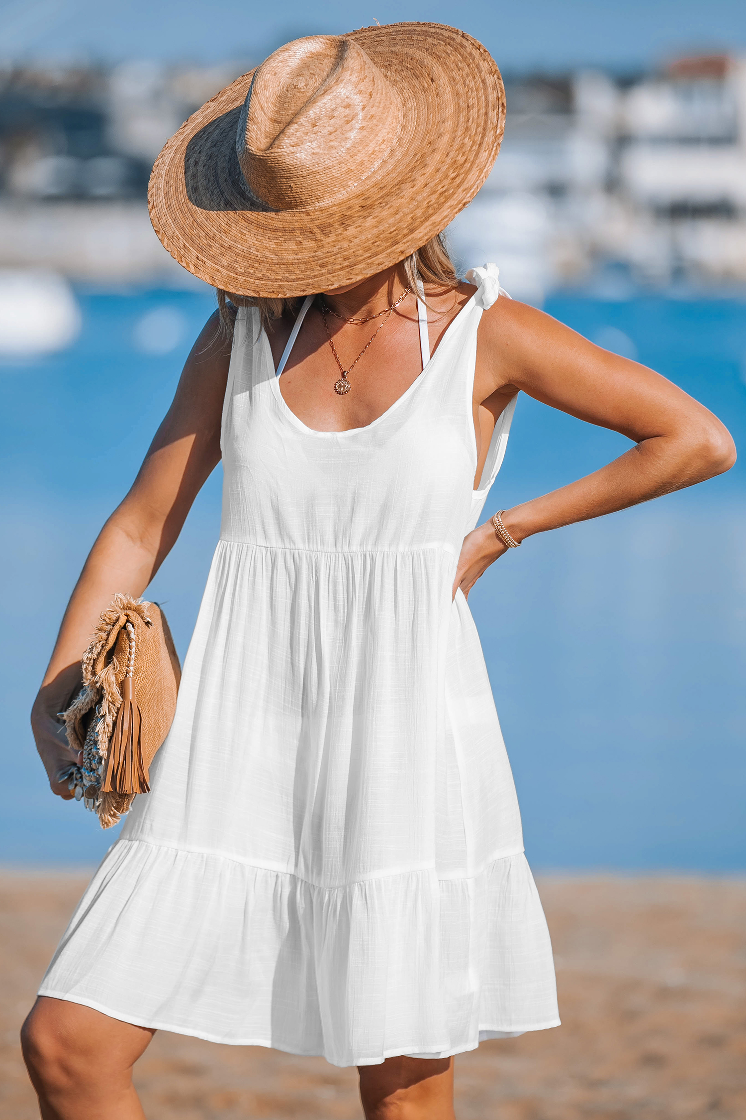 HomeWhite Ruffle Trimmed Cover-Up Mini Dress