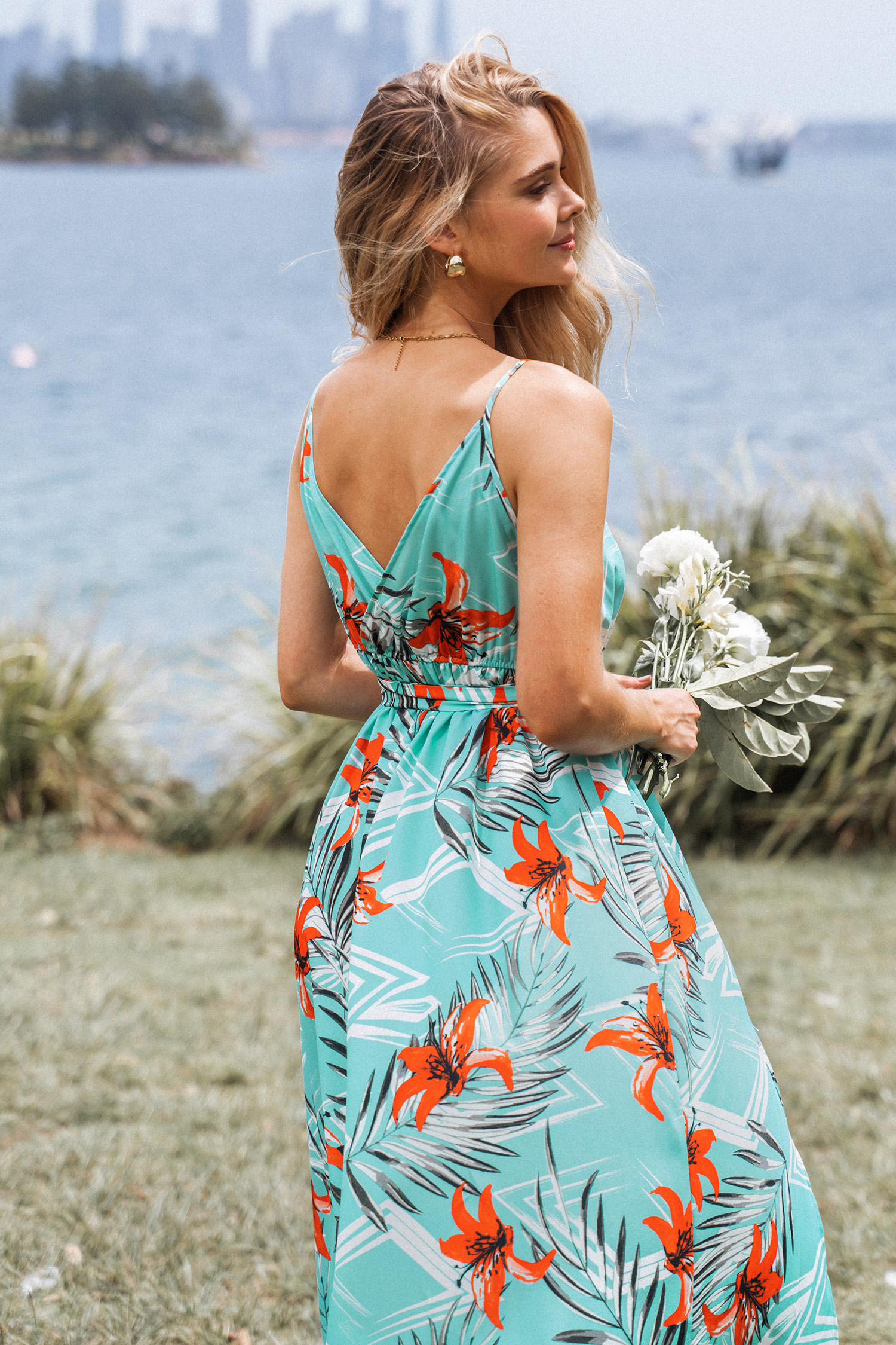 HomeWhitney Belted Tropical Floral Print Dress