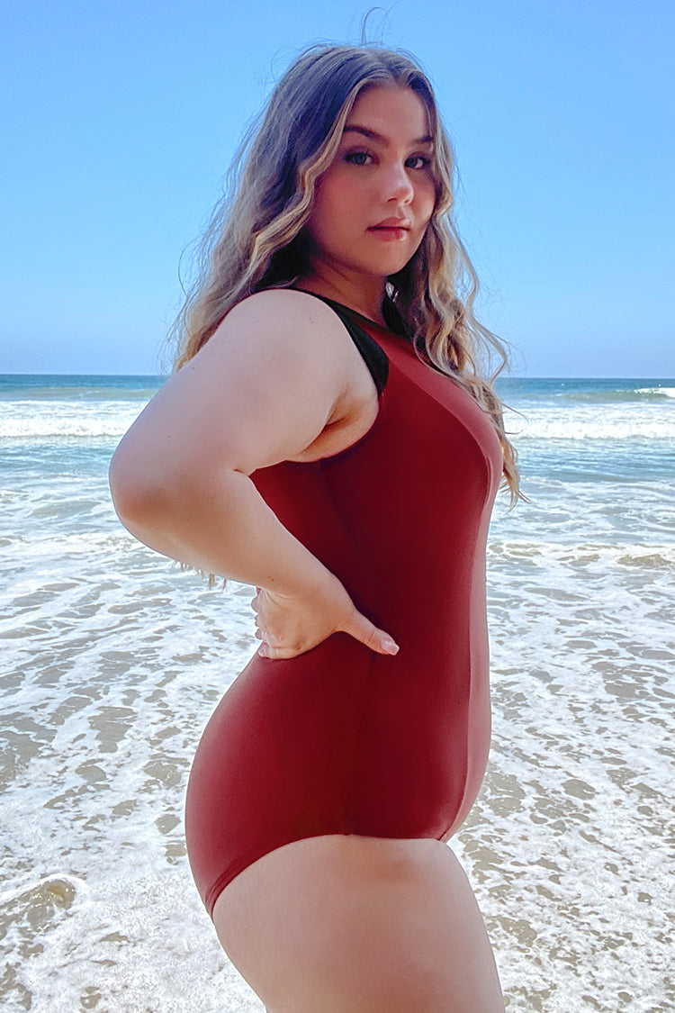 Plus Size Front Zip Tummy Control One Piece Swimsuit
