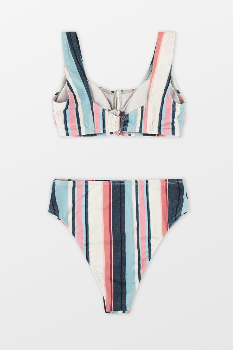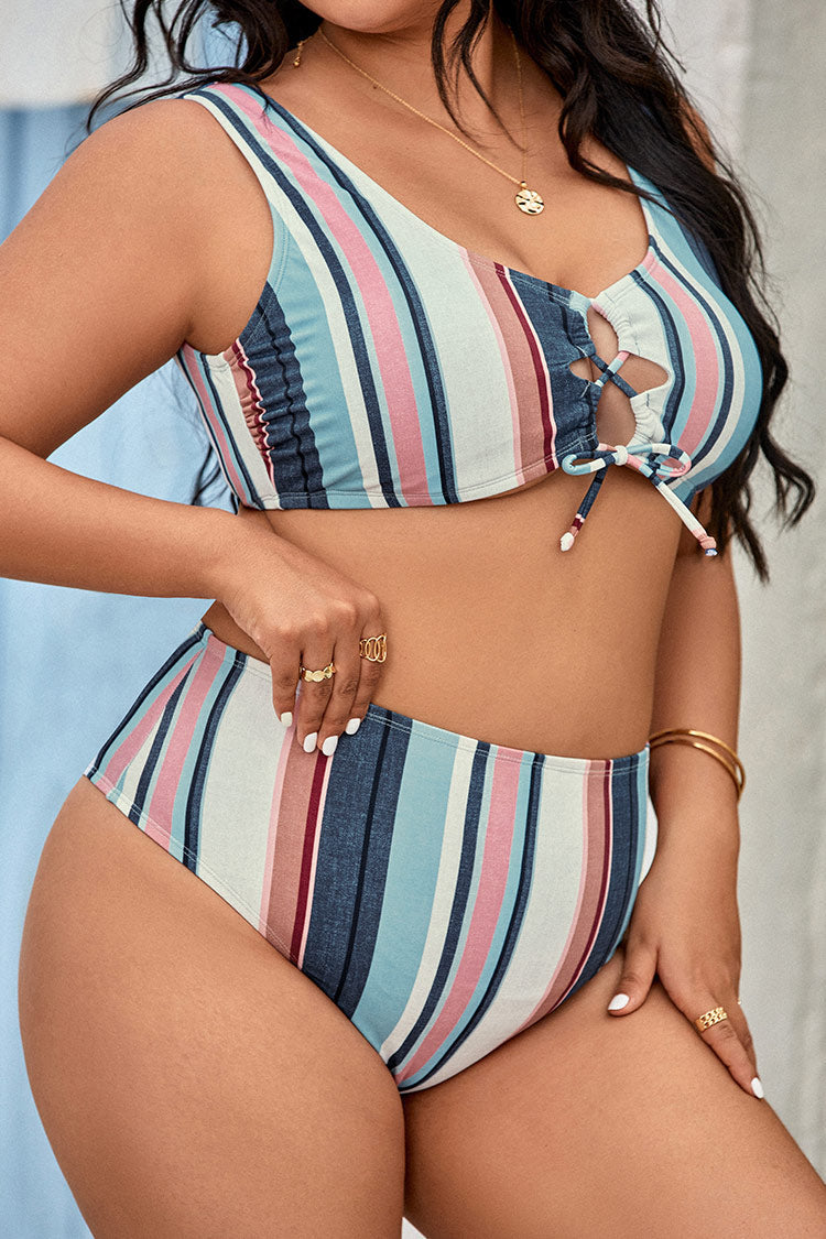 Plus Size Lace Up Bralette & High Waist Bikini Swimsuit