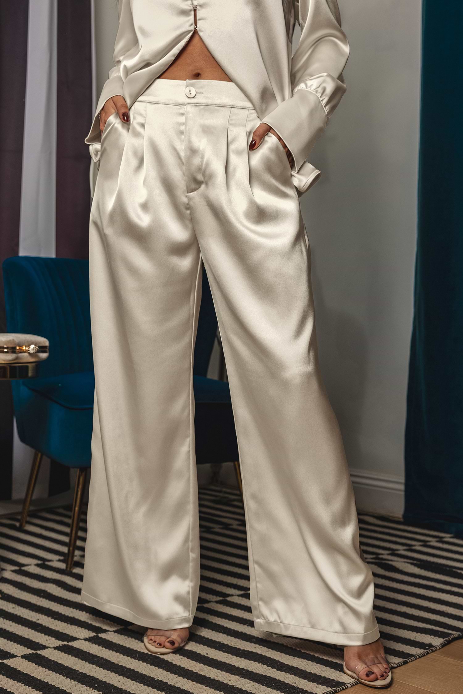 Homex JoJo Champagne Satin Pleated Trousers