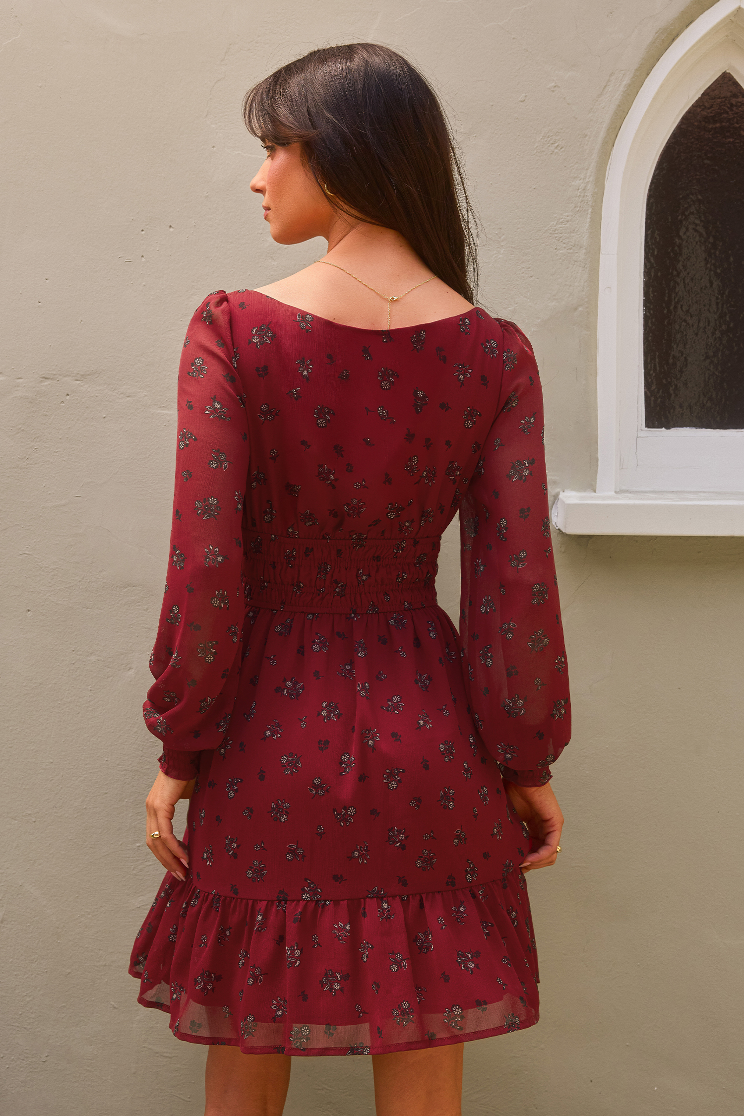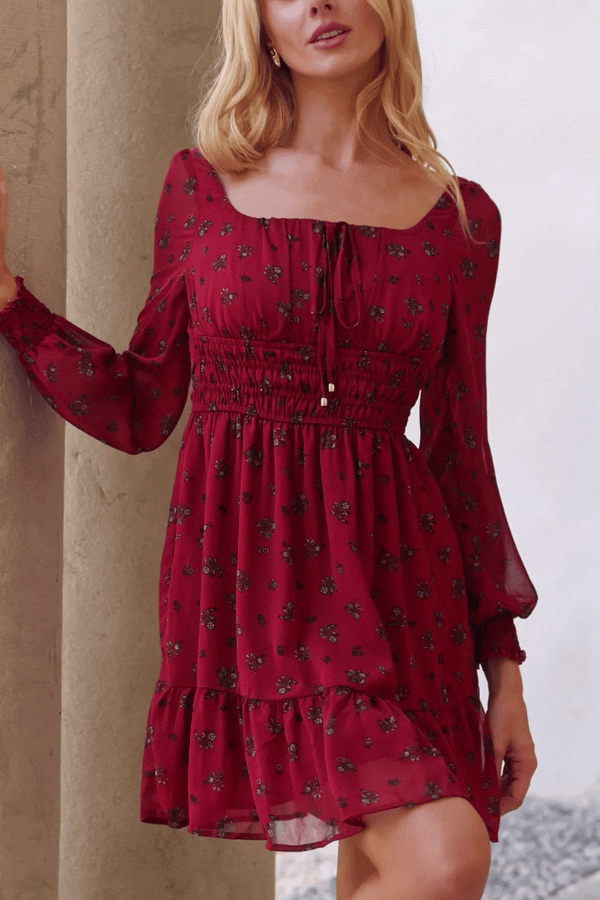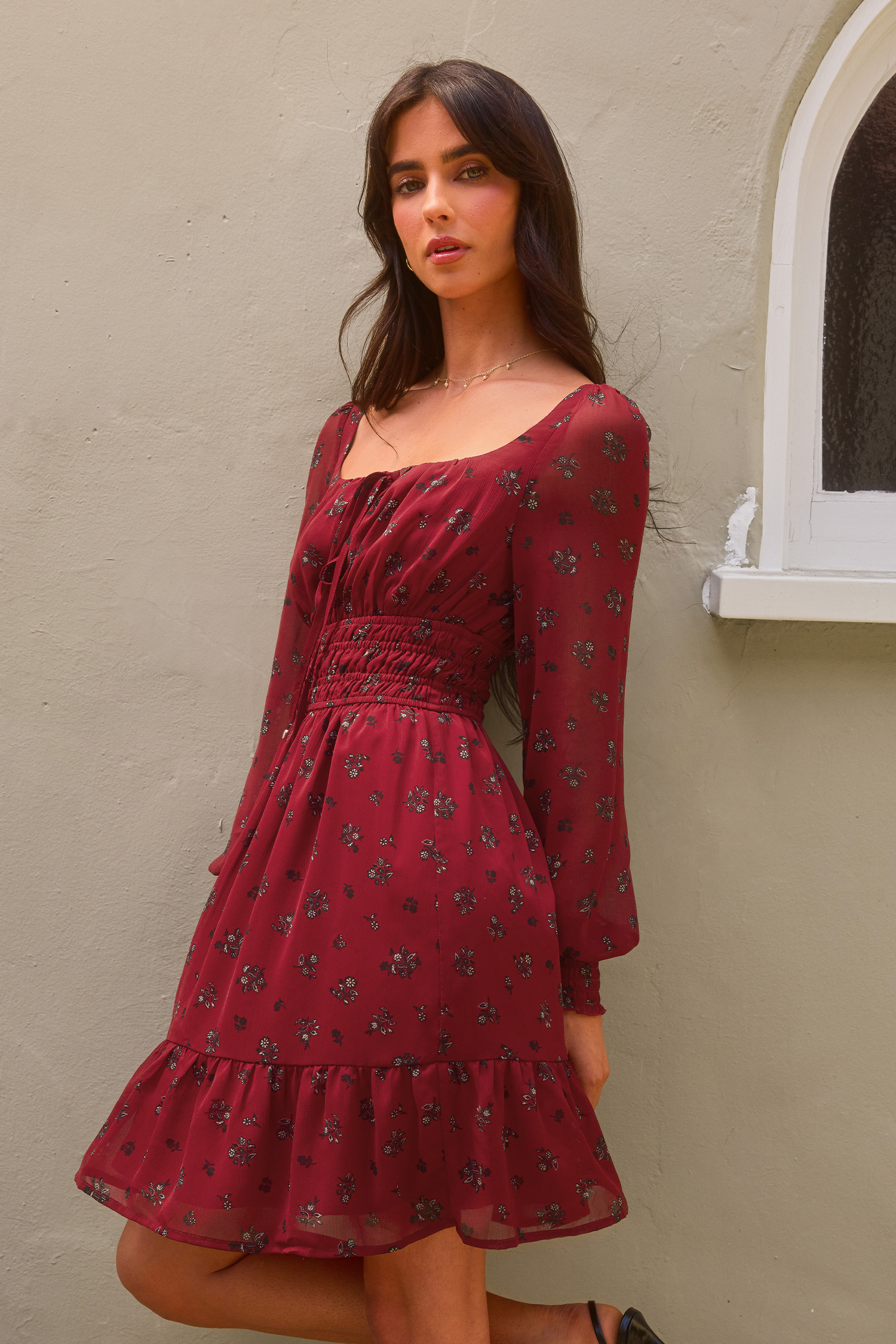 The Cabernet Mini Dress is made for raising a glass and stealing the spotlight! With a square neckline, long sleeves, and an elasticized waist, this mini adds a little extra fun to every celebration.