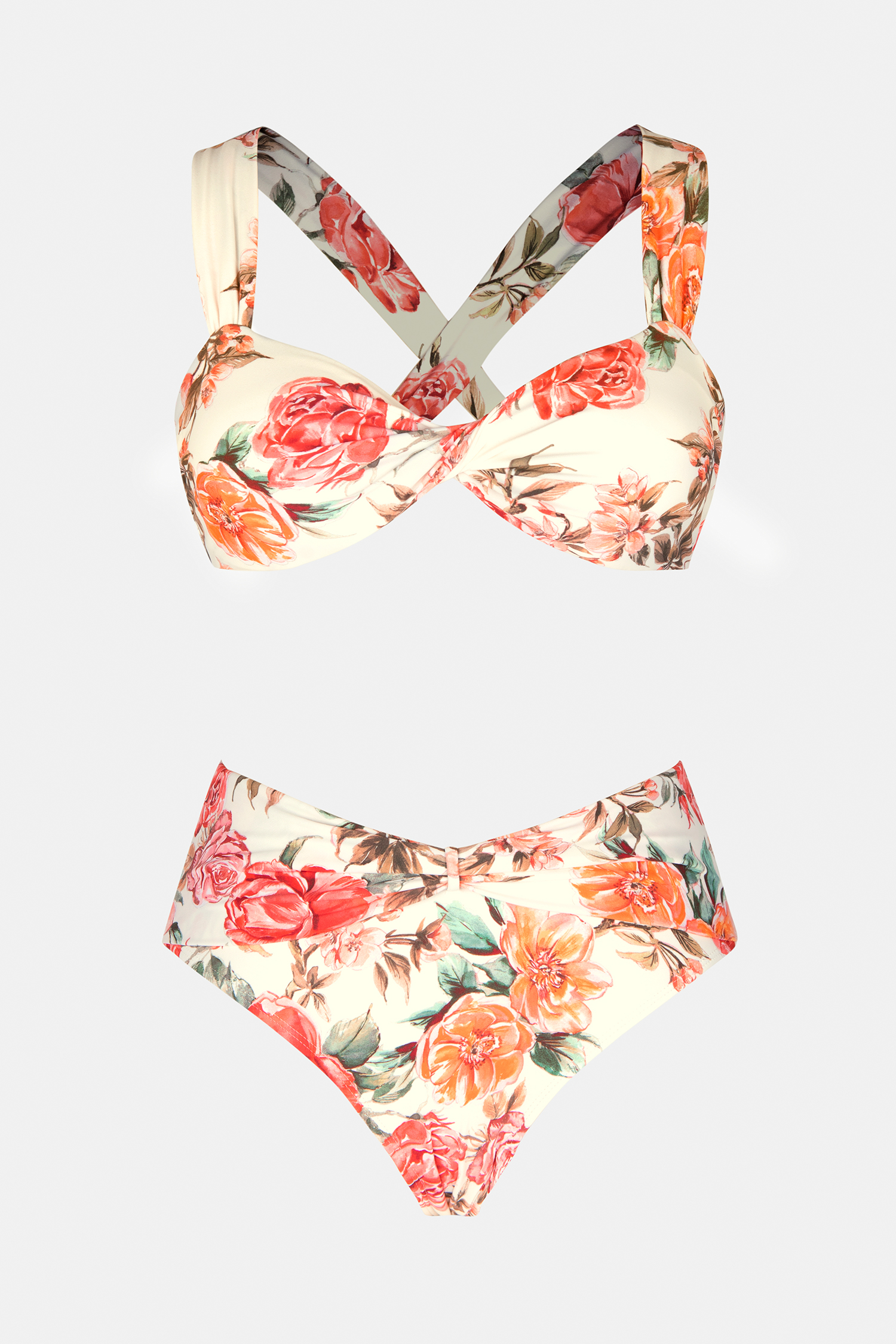 Elegant Rose Twist Top & Strappy High Waist Bikini Set