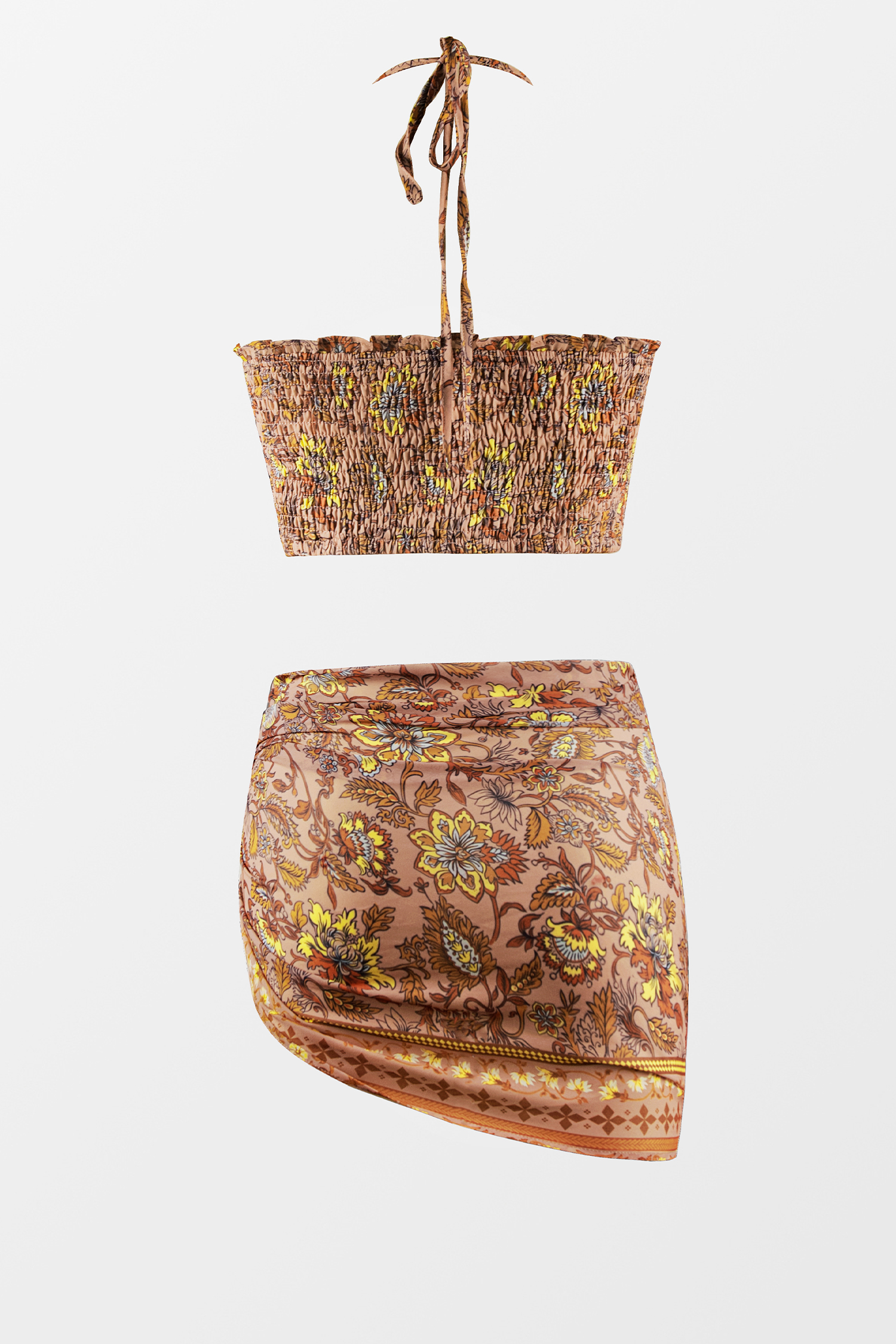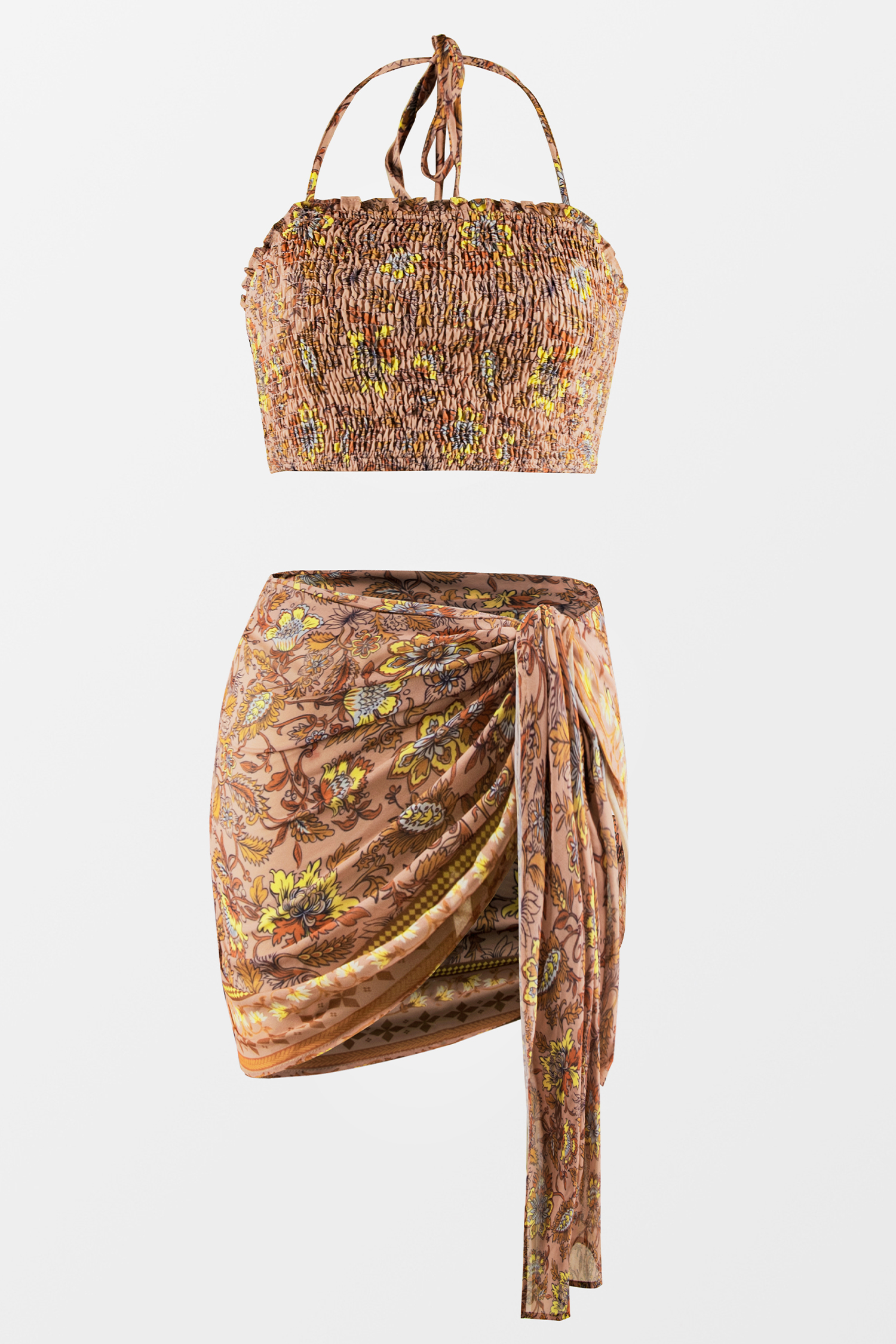 HomeVacation Paisley Print Smocked Crop Top & Sarong Set